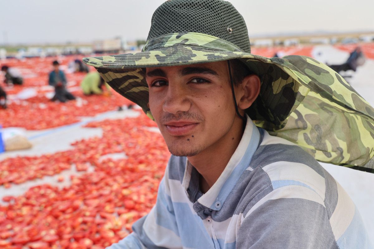 Çalışmaya yaklaşık 15 gündür geldiklerini aktaran İlik, “Serilmesi bir hafta sürüyor. Domates kesimine de yaklaşık iki gündür başladık. Yaklaşık 50 derece hissediyoruz, daha fazla, havalar çok sıcak. 7 kilo yaş domatesten 1 kilo kuru domates çıkıyor. Bu görülen tırlar da dışarıdan geliyor.