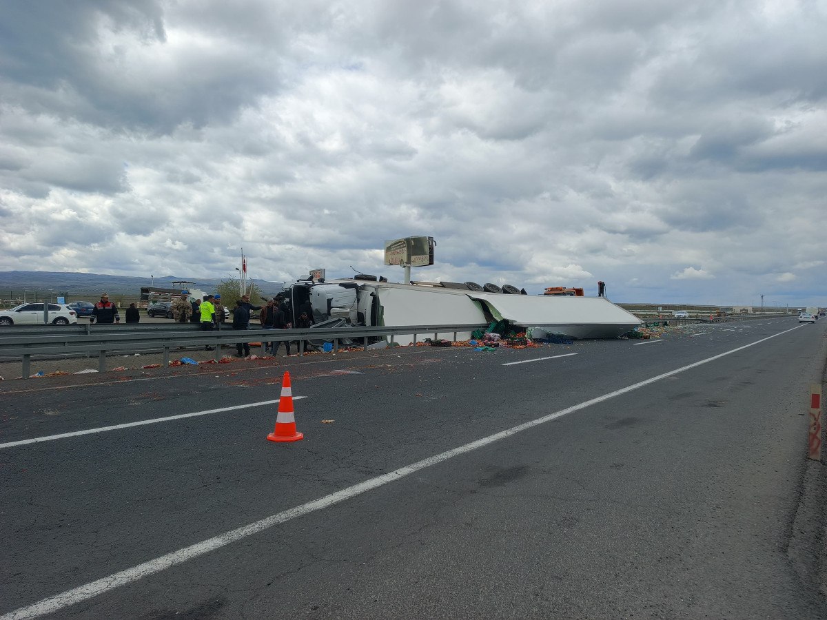 Kazanın, sürücünün direksiyon hakimiyetini kaybetmesi sonucu kamyonun yol kenarındaki demir bariyerlere çarpmasıyla gerçekleştiği bildirildi. Çarpmanın etkisiyle kamyon devrilirken, dorsesindeki sebzeler yola savruldu.