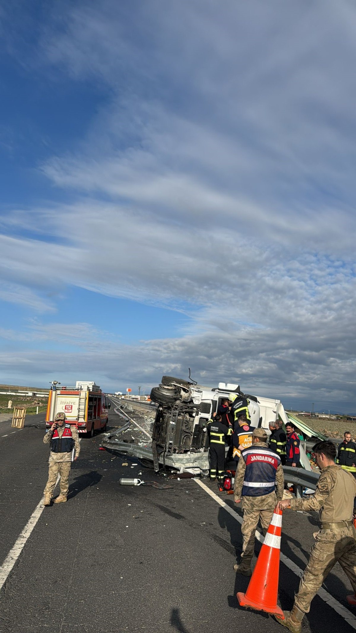 Diyarbakır-Şanlıurfa kara yolunda meydana gelen trafik kazasında, sebze yüklü bir kamyonun devrilmesi sonucu sürücü hayatını kaybetti.