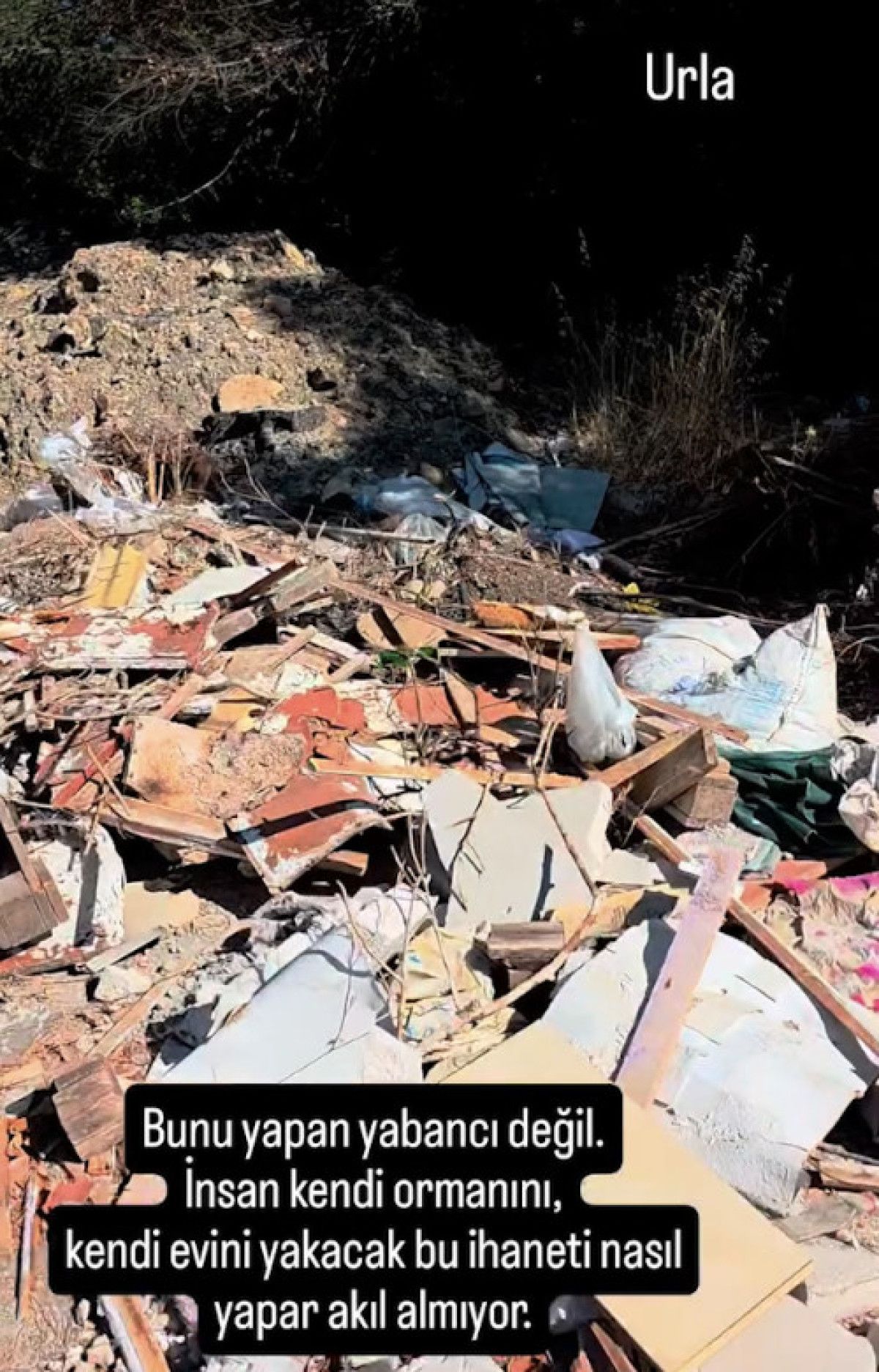 Bakın molozlara, tahtalara, tuğlalara, camlara. Bakın moloz dökme yerinden 10 metre uzaktayız. Yazıklar olsun ya. Sonra bu ormanlar niye yanıyor.