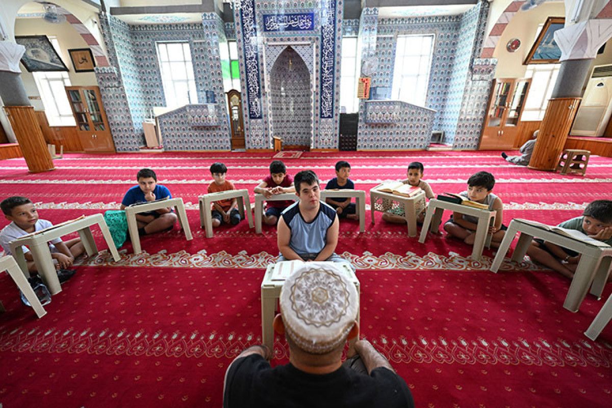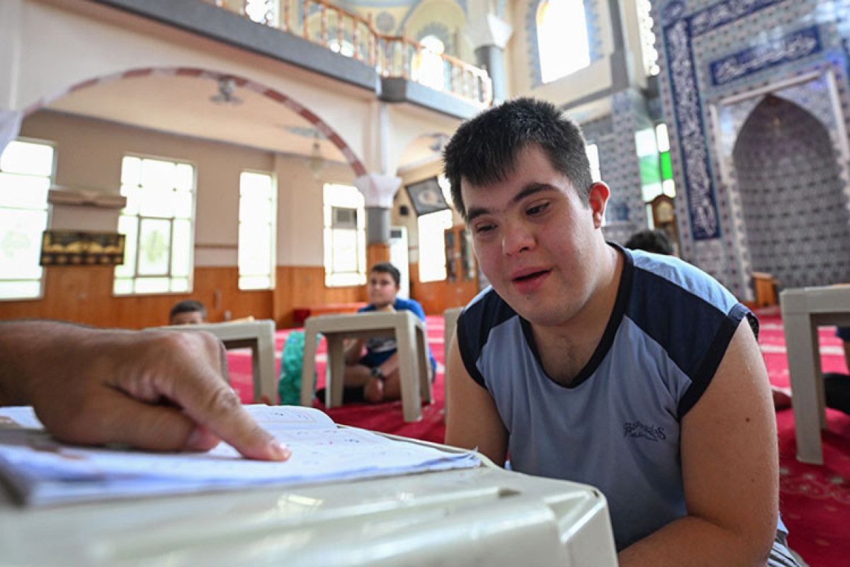 Gaziantep’te Kur’an kursu öğrencilerinden down sendromlu Enes Erinmez, neşesi ve azmiyle arkadaşlarına örnek oluyor.