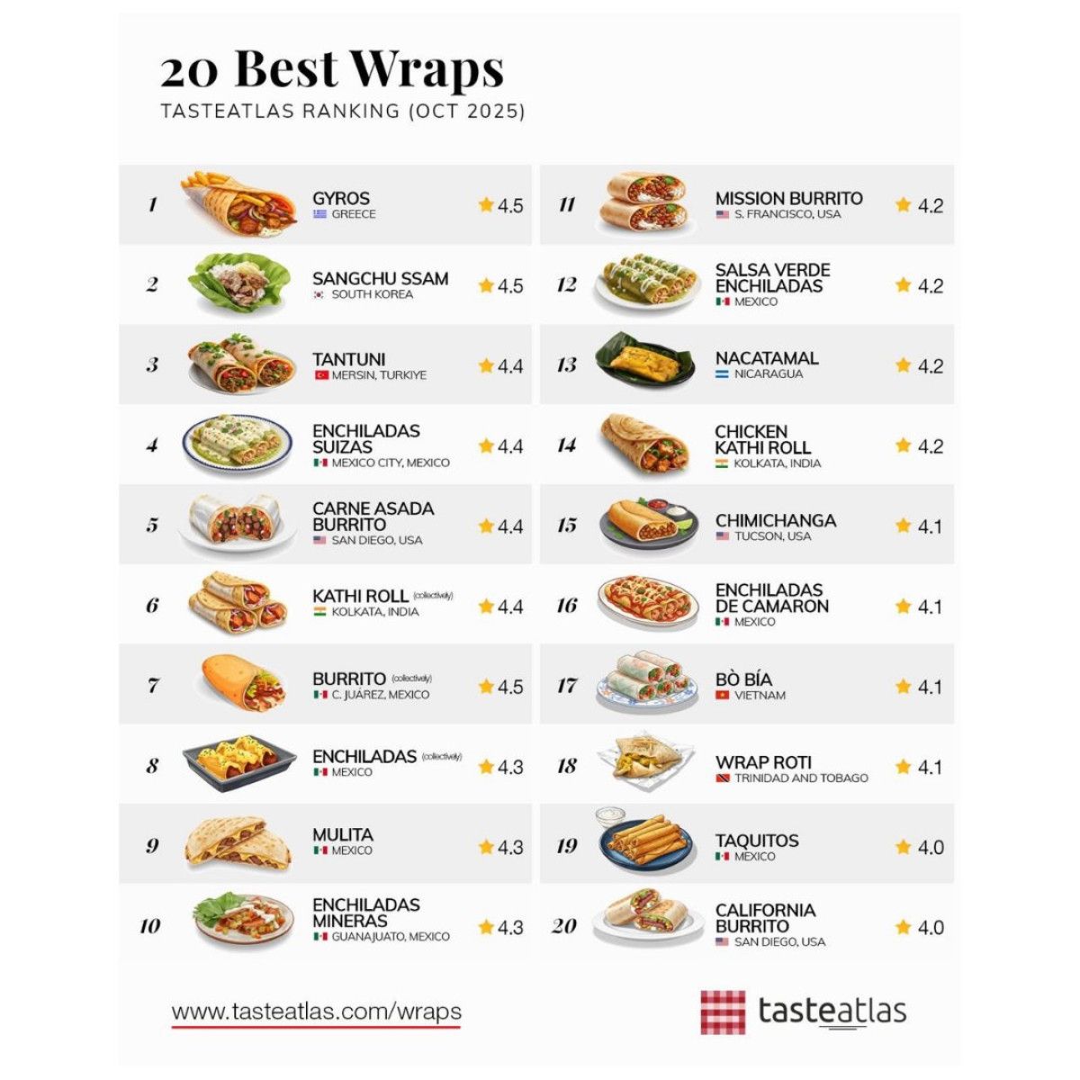 Dünyanın geleneksel lezzetlerini inceleyen ünlü gastronomi rehberi Taste Atlas, “Dünyanın En İyi 20 Dürümü” listesini yayımladı.