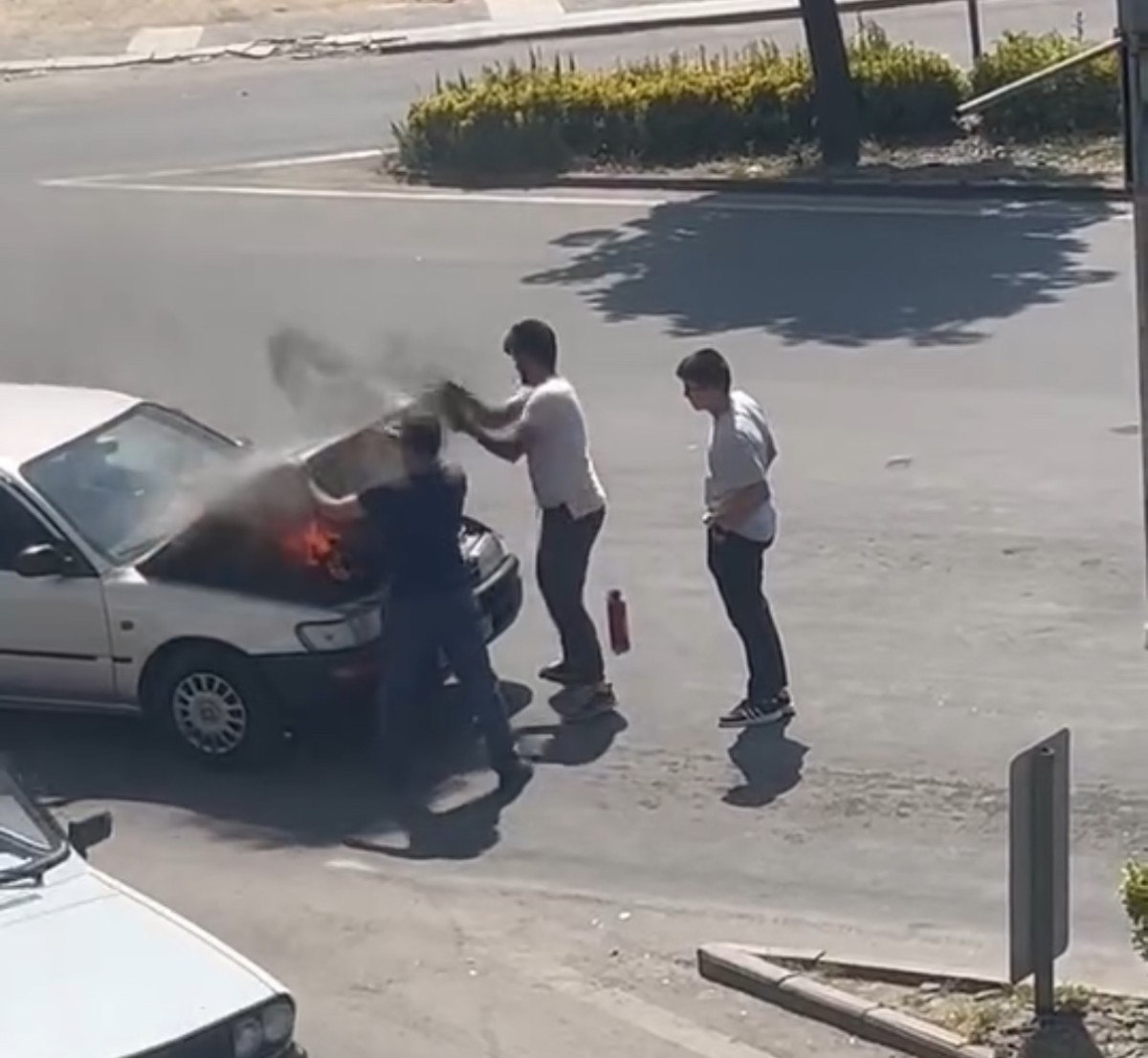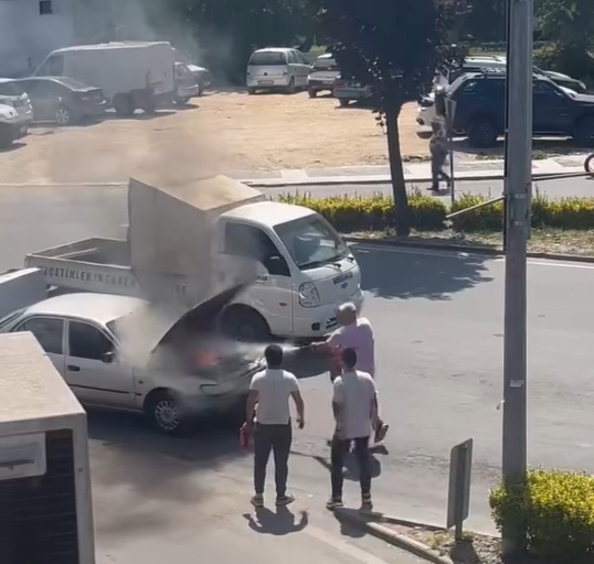 Düzce kent merkezinde seyir halindeki bir otomobilin motor bölümünden aniden dumanlar yükseldi. Sürücü, aracı durdurarak motor kapağını açtığında alevlerin yükseldiğini gördü. Olay yerinde bulunan vatandaşlar, yangın tüpleriyle kısa sürede alevlere müdahale etti.