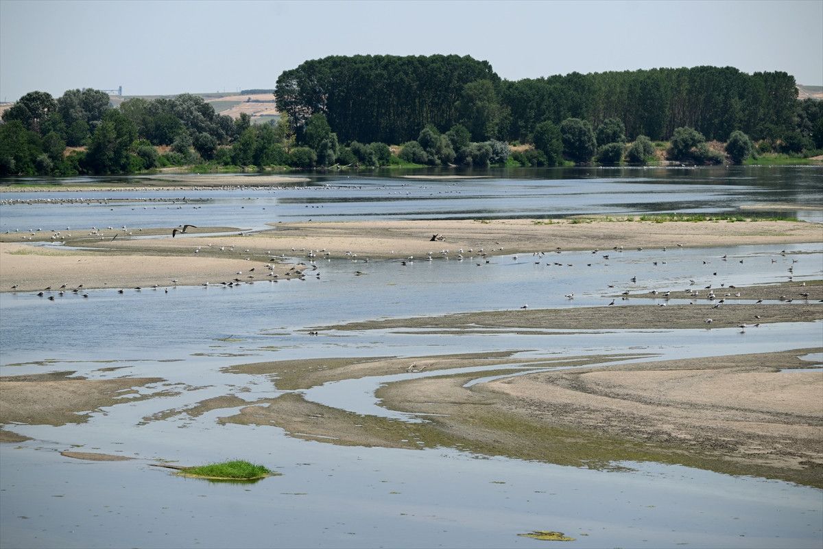 Meriç Nehri’nde suyun azlığı nedeniyle nehirlerde kum adacıkları oluştu.