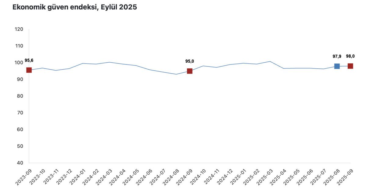 Türkiye İstatistik Kurumu (TÜİK), 2025 eylül ayı ekonomik güven endeksini açıkladı.