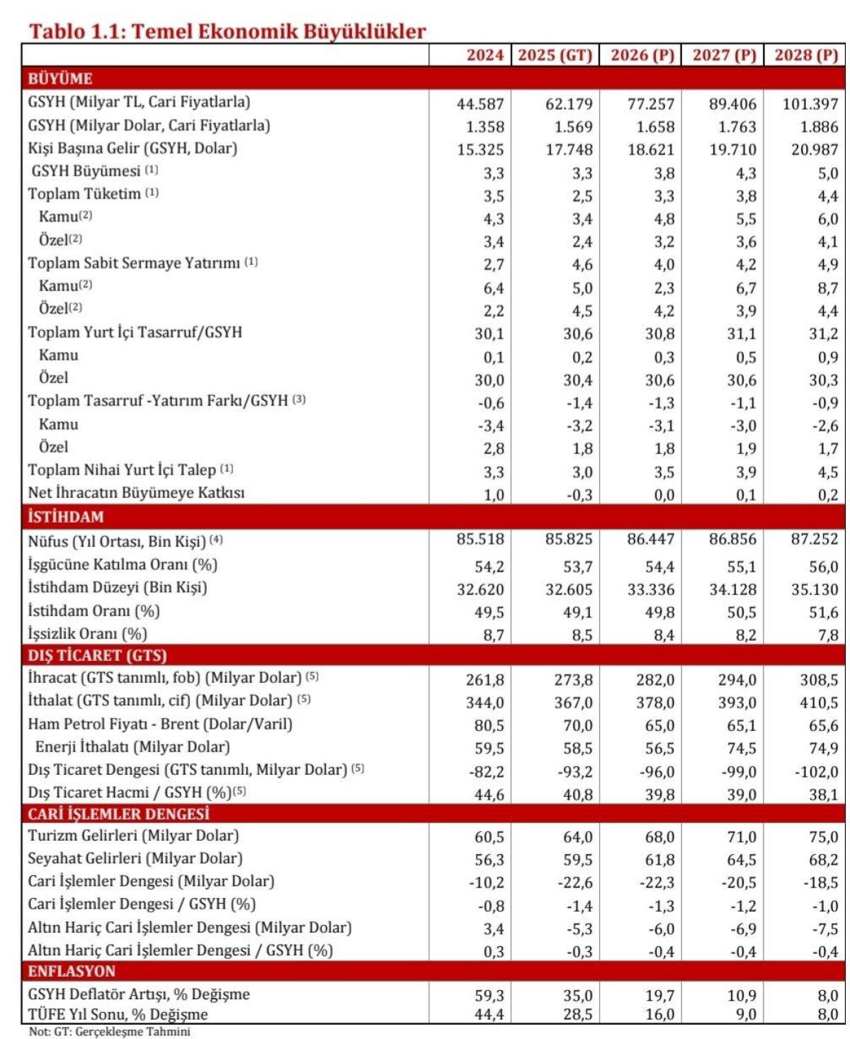 OVP’de yer alan 2026-2028 dönemi hedefleri şu şekilde belirlendi: