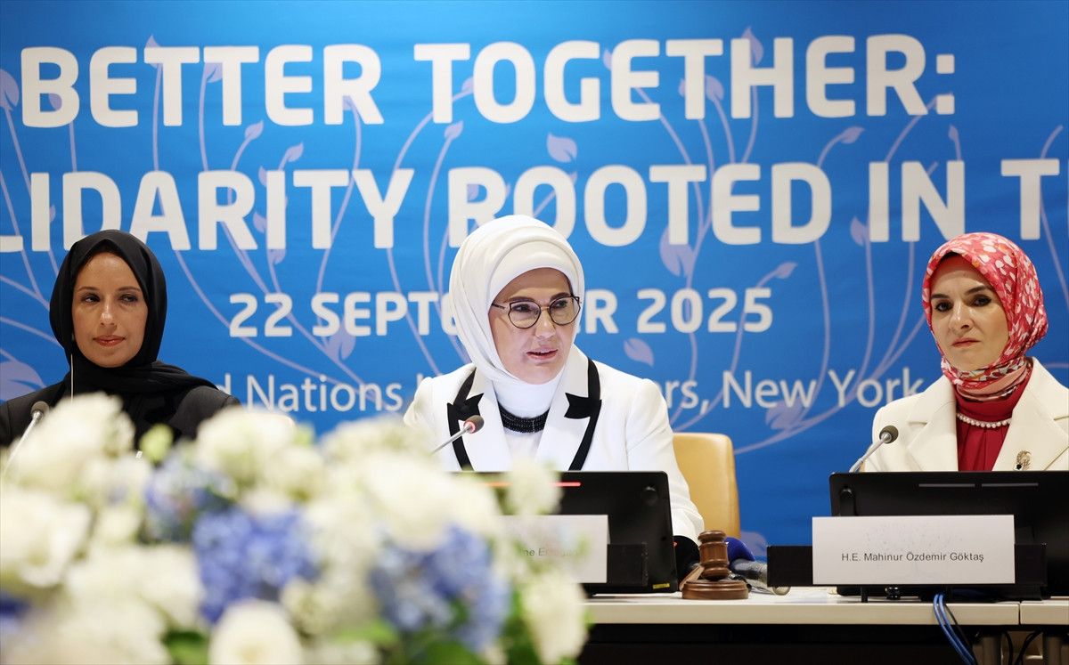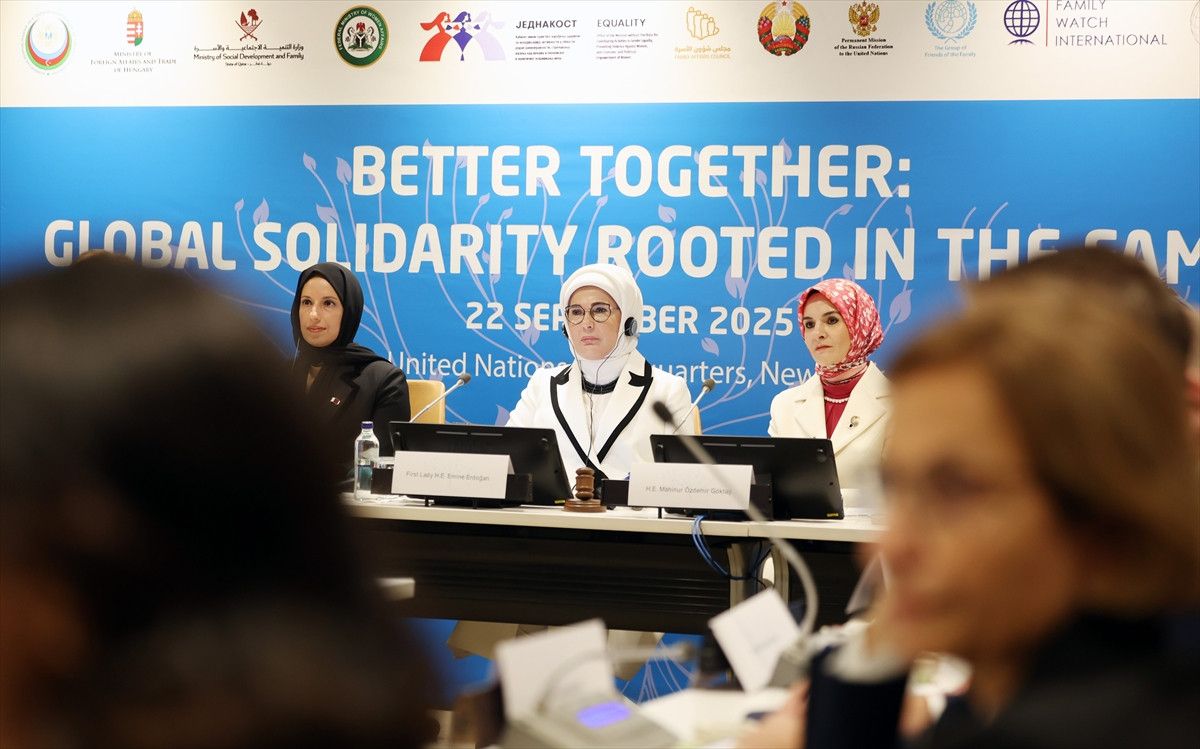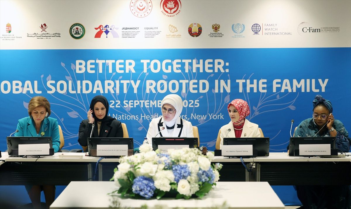 Emine Erdoğan, sosyal medya hesabından yaptığı paylaşımda, “Birleşmiş Milletler 80’inci Genel Kurulu kapsamında BM Genel Merkezi’nde, Aile ve Sosyal Hizmetler Bakanlığımızın ev sahipliğinde düzenlenen ‘Birlikte Daha İyiye: Aileden Başlayan Küresel Dayanışma’ programında uluslararası önemli isimlerle bir araya gelmekten memnuniyet duydum.