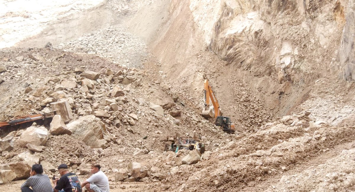 Düşen dev kayaların altında kalan işçileri kurtarmak için arama-kurtarma ekiplerinin bölgede yoğun çaba harcadığı bildirildi.