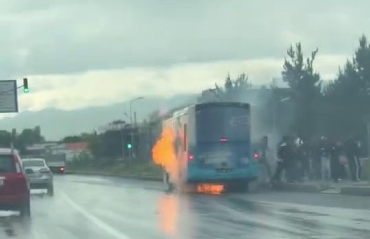Erzurum’un Aziziye ilçesinde sefer halinde olan bir belediye otobüsünde aniden yangın çıktı. Yolcular büyük panik yaşayarak araçtan hızla dışarı çıkmaya çalıştı. Yangın anı, yoldan geçen sürücüler tarafından cep telefonlarıyla kaydedildi.