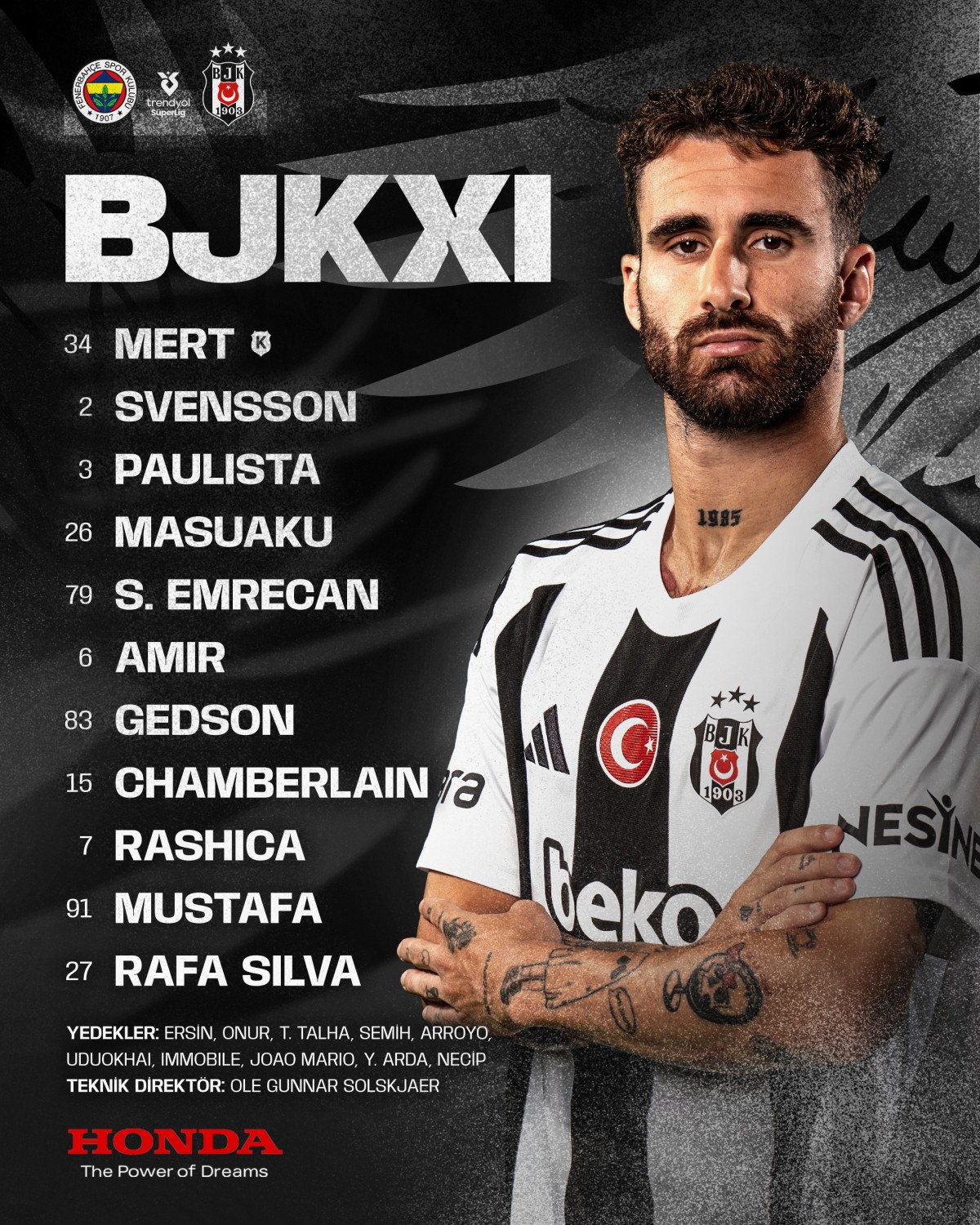 Beşiktaş: Mert Günok, Svensson, Paulista, Masuaku, Emrecan Terzi, Hadziahmetovic, Gedson Fernandes, Oxlade-Chamberlain, Rashica, Mustafa Hekimoğlu, Rafa Silva