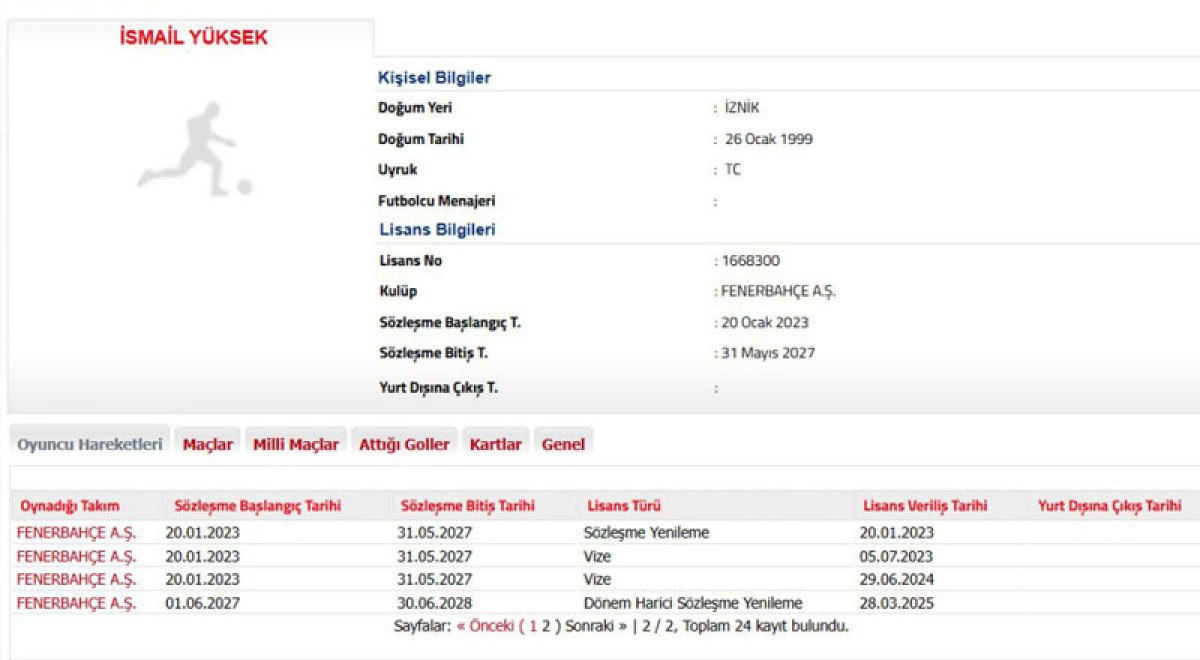 26 yaşındaki futbolcunun sözleşmesi Türkiye Futbol Federasyonu’nun resmi internet sayfasında güncellendi.
