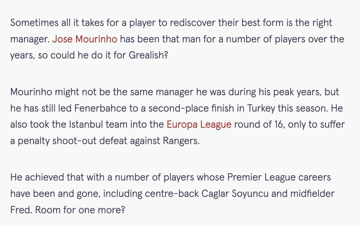 Grealish için Fenerbahçe’nin yanı sıra Milan da seçenekler arasındaydı ancak İtalyan ekibinin Şampiyonlar Ligi vizesi alamaması nedeniyle bu ihtimal ortadan kalktı.