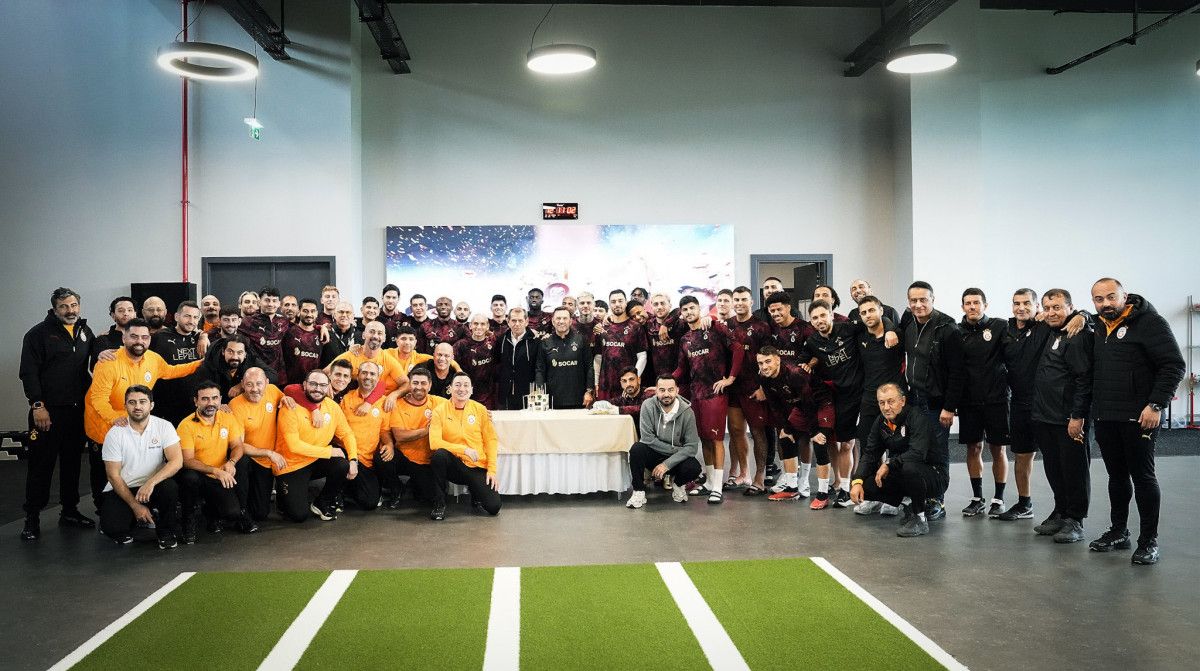 Tesislerde yapılan kutlamaya Galatasaray Başkanı Dursun Özbek, futbolcular ve teknik ekip katıldı.