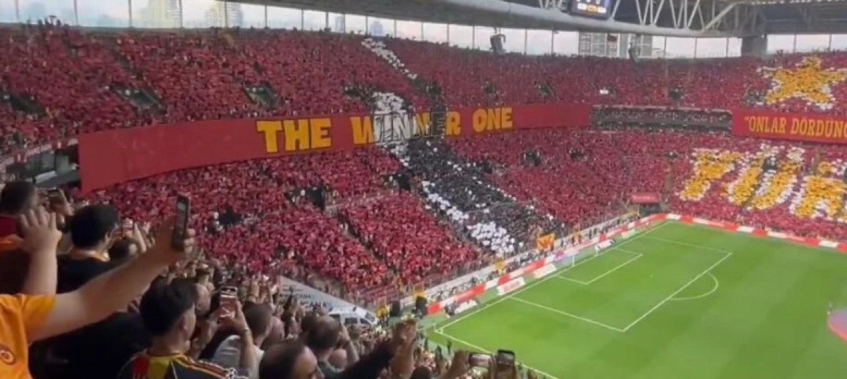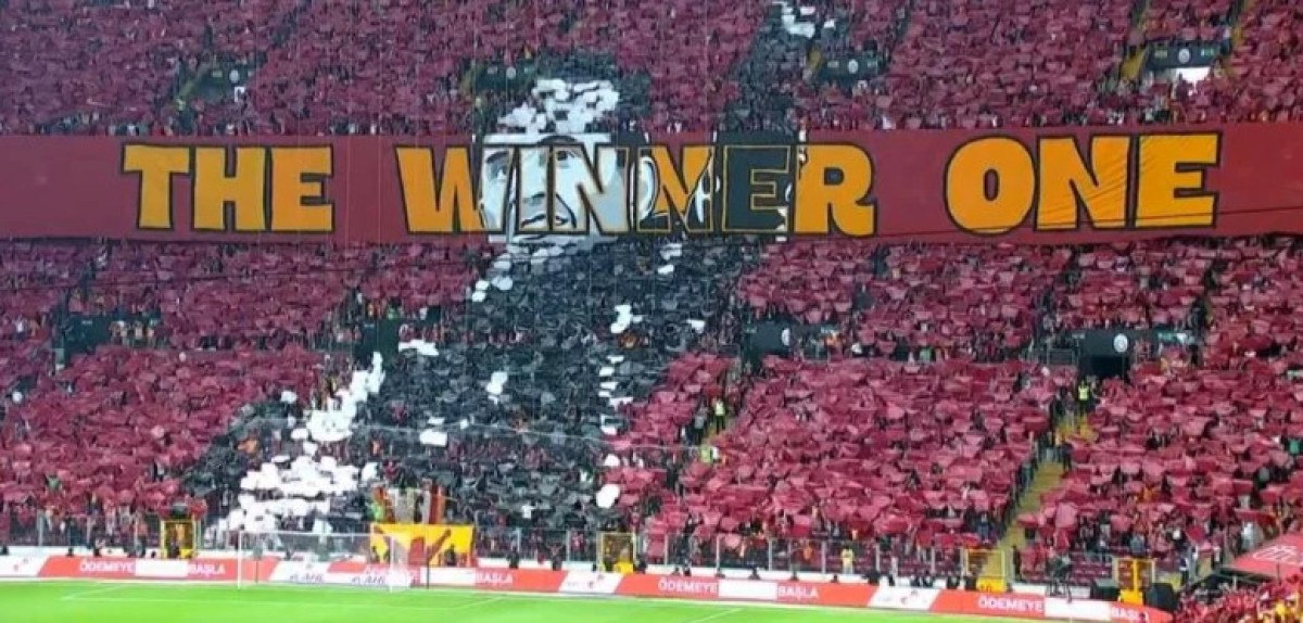Kuzey tribününde kartonlarla Okan Buruk’un fotoğrafı yapılırken, daha sonra ‘The Winner One’ yazısı ve futbolcuların yer aldığı görsel açıldı.