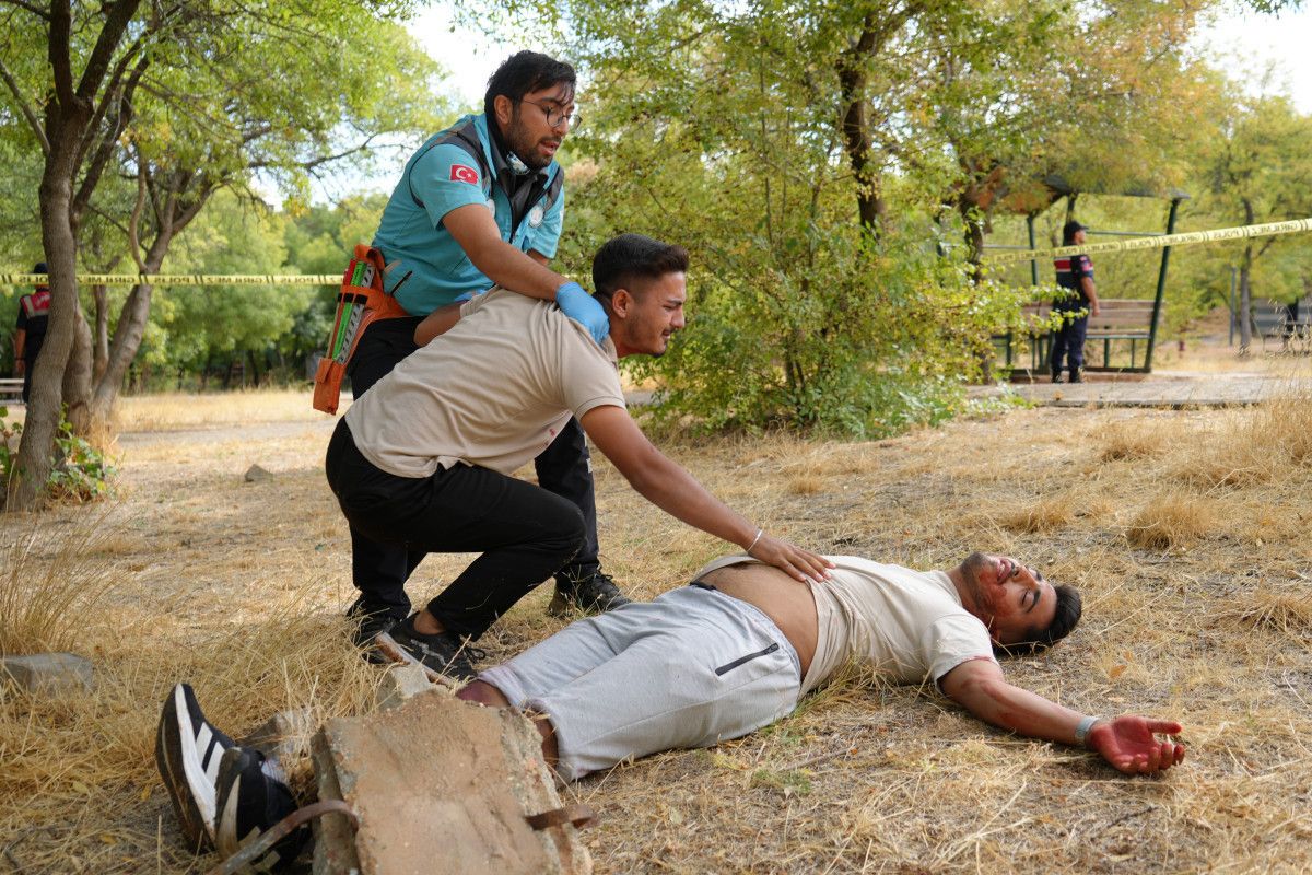 Erikçe Ormanı’nda düzenlenen tatbikatta temsili ölü ve yaralılara müdahale eden ekiplerin müdahale süresi, davranışlarında sergiledikleri performans ile ölü ve yaralı yakını rollerini çok iyi oynaması alkış topladı.