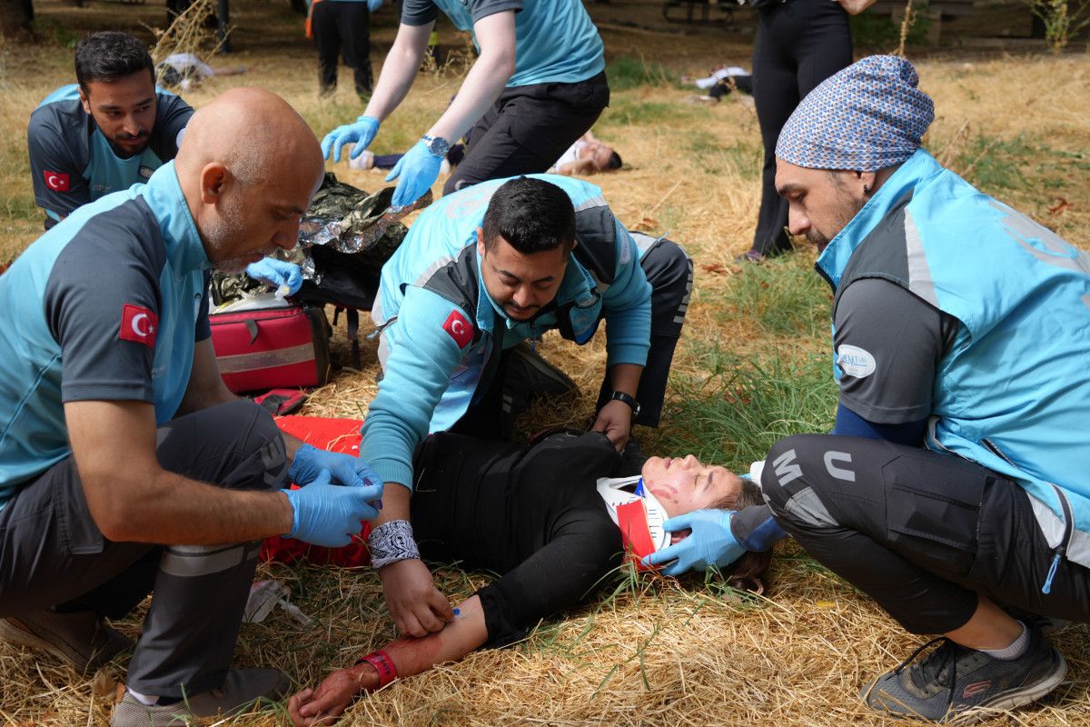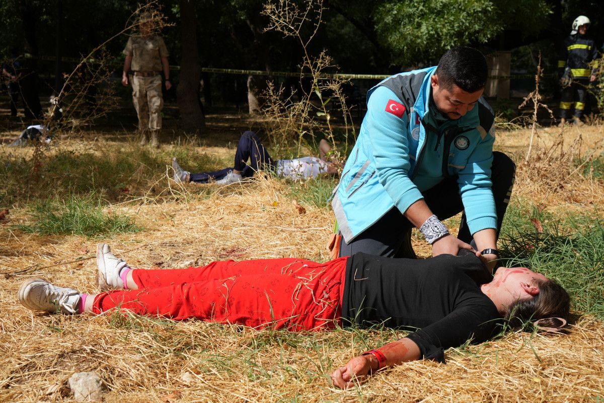 Gerçeği aratmayan tatbikata senaryo gereği 5 kişi hayatını kaybederken, yaralanan ve bazı uzuvları kopan 20 yaralı için ekipler adeta dakikalarla yarıştı.
