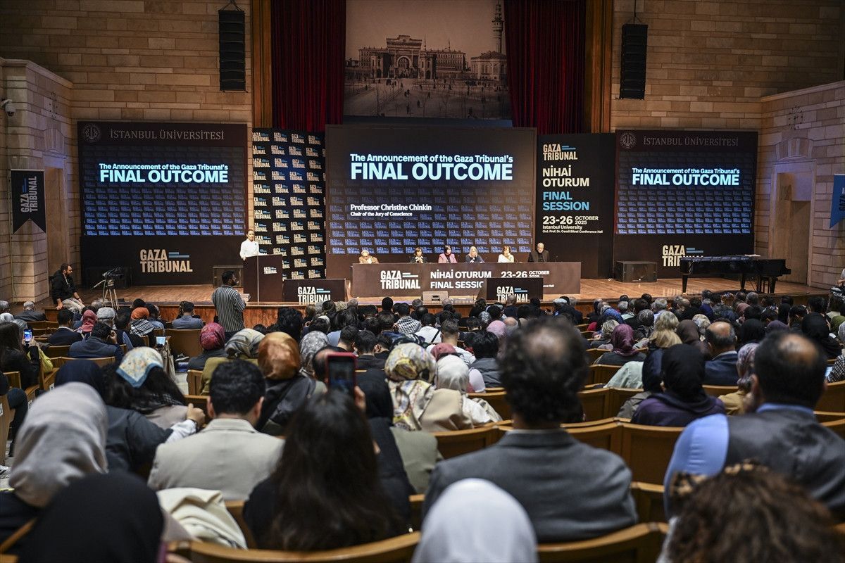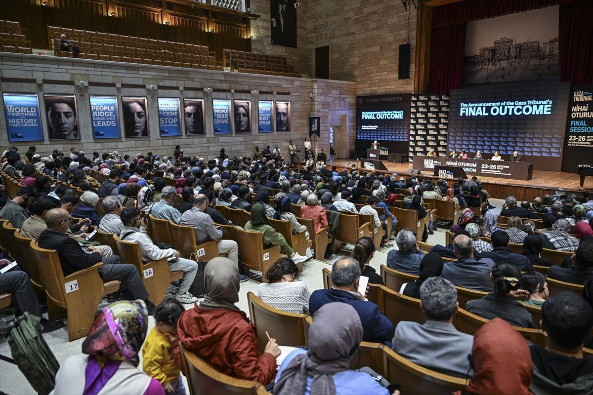 İstanbul Üniversitesi Prof. Dr. Cemil Bilsel Konferans Salonu’nda eski Birleşmiş Milletler (BM) Filistin Özel Raportörü Prof. Dr. Richard Falk başkanlığında toplanan Gazze Mahkemesi üyeleri, nihai kararını duyurdu.