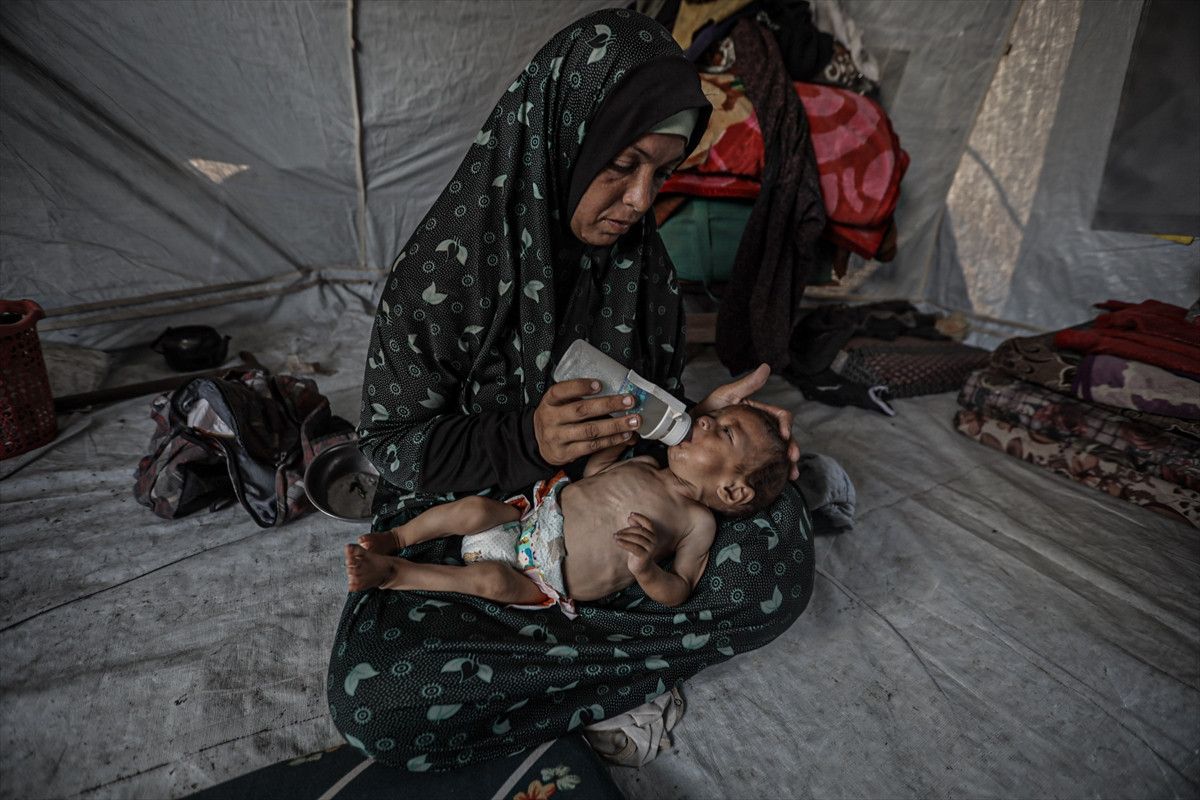 Annesi, süt ve temel gıdalara ulaşamadığı için bebeğini yalnızca suyla beslemek zorunda kalıyor. Şiddetli yetersiz beslenme yaşayan Sobh, hayati tehlikeyle karşı karşıya.