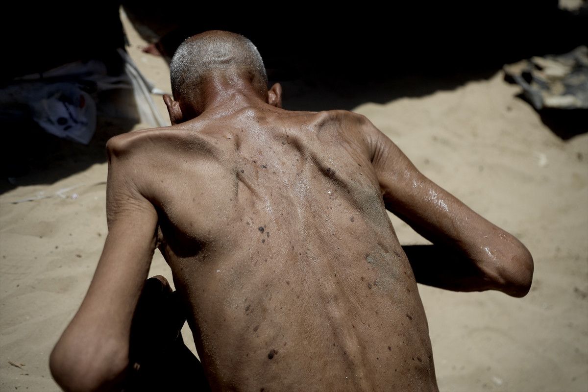 Gazze Şeridi’nin güneyindeki Abasan bölgesinden zorla göç ettirilen 58 yaşındaki eski müezzin Selim İbrahim Asfur da İsrail ablukası nedeniyle ciddi derecede yetersiz beslenme yaşıyor.