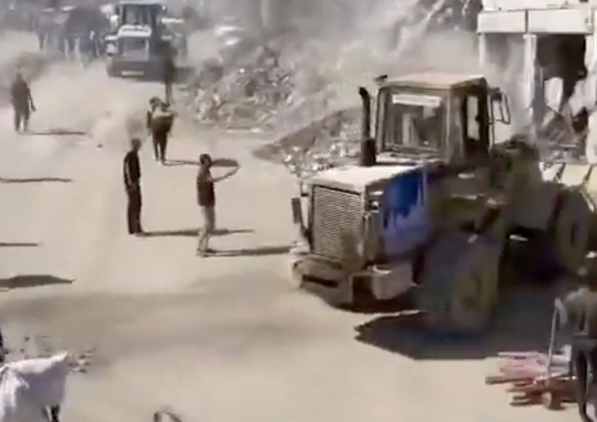 Gazze Belediyesi’ne ait araç ana caddeleri enkazdan temizlemek için harekete geçti.