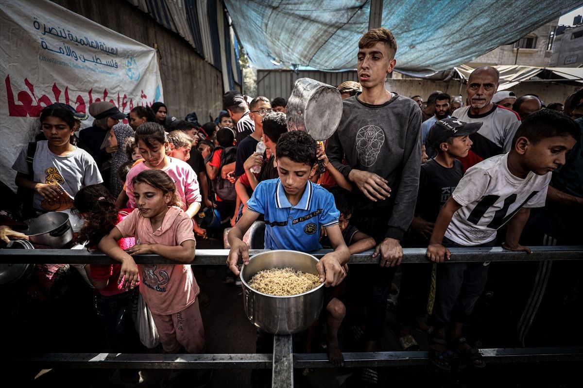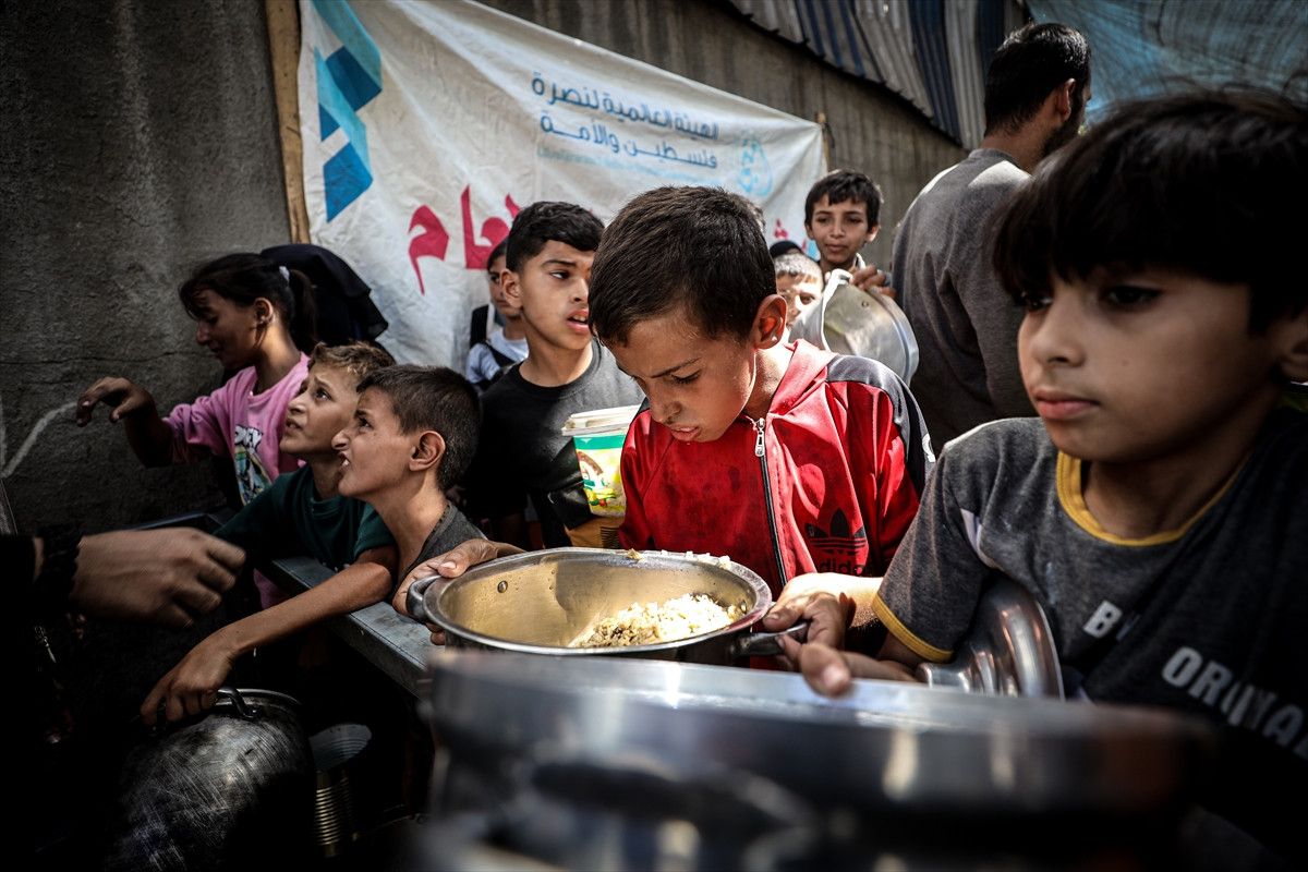 İsrail’in Gazze Şeridi’ne yönelik ablukası ve devam eden saldırıları nedeniyle gıdaya erişimde zorluk yaşayan Filistinlilere, bir hayır kurumu tarafından sıcak yemek dağıtımı yapıldı.