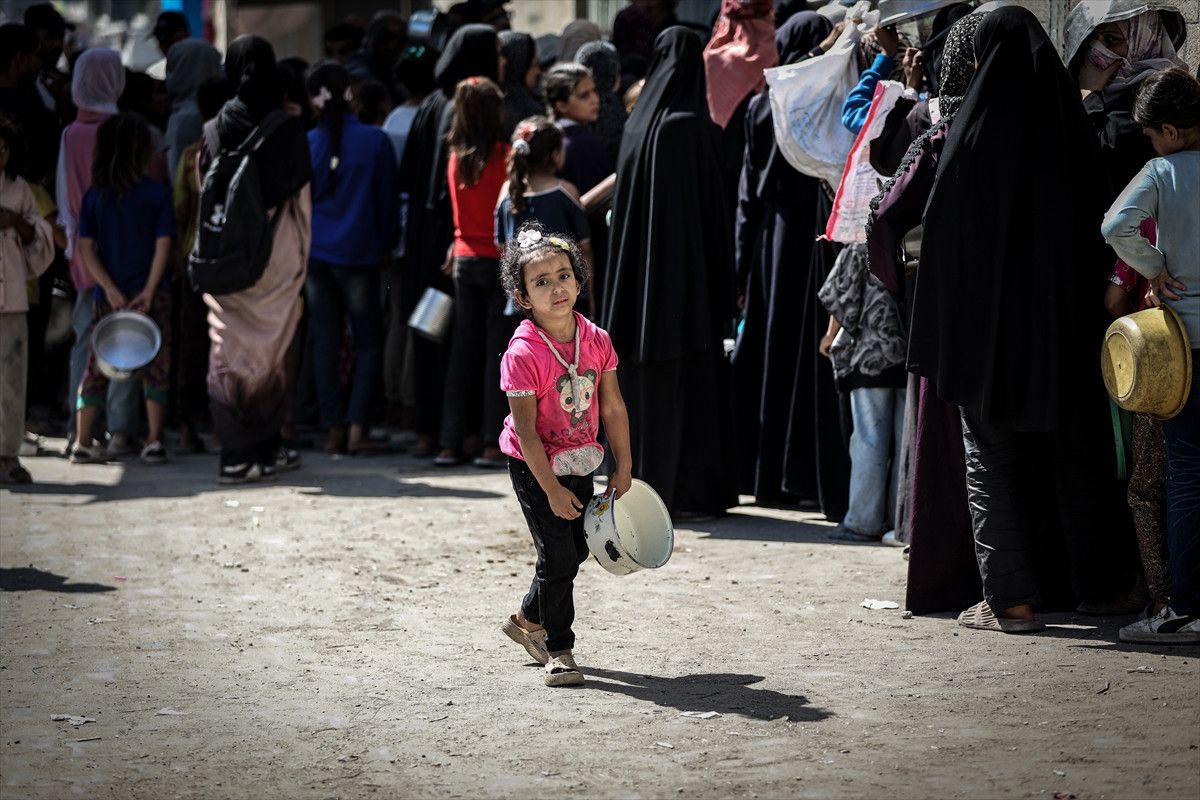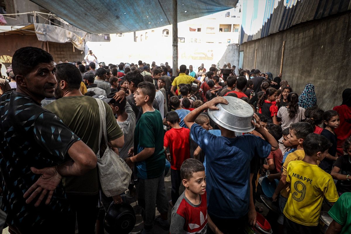 Gazze’nin orta kesimindeki Nuseyrat Mülteci Kampı’nda gerçekleştirilen dağıtım sırasında yoğunluk yaşandı.