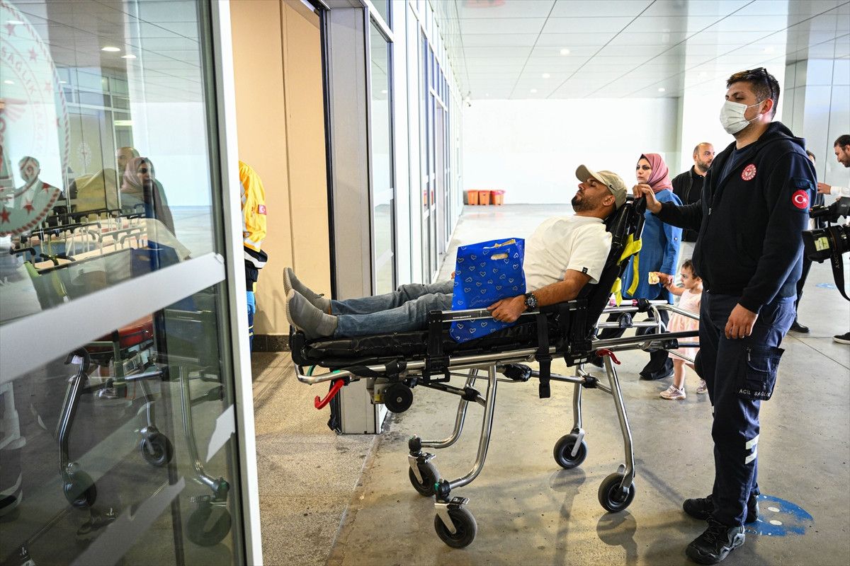 Gazzeliler, Esenboğa Havalimanı’nda hazır bekletilen ambulanslarla Etlik Şehir Hastanesine sevk edildi.