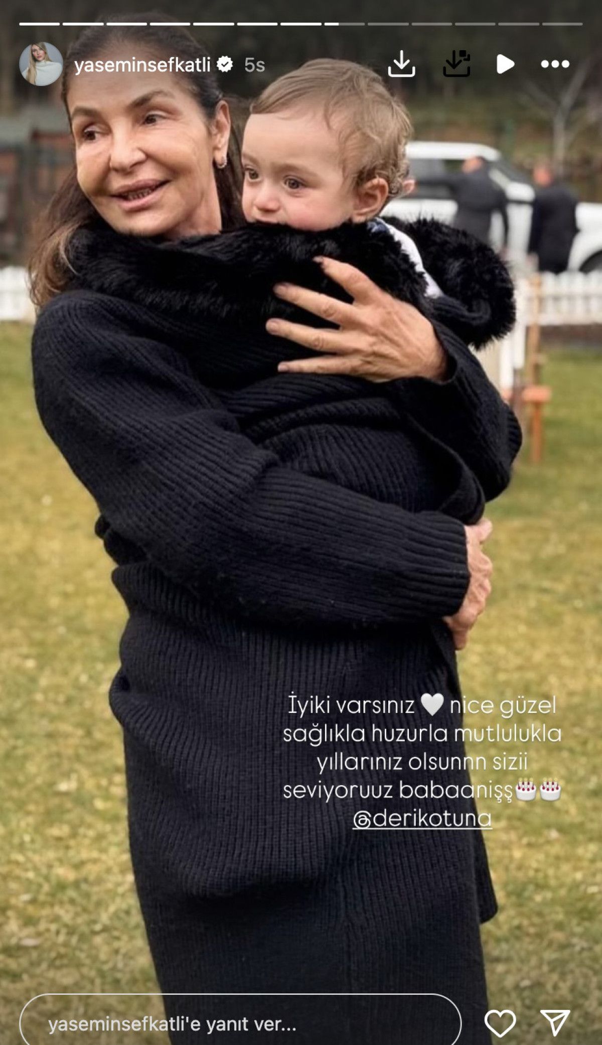 Oğluyla kayınvalidesinin bir karesini yayınlayan Şefkatli, “İyi ki varsınız. Nice güzel sağlıkla, huzurla, mutlulukla yıllarınız olsun. Sizi seviyoruz babaniş” ifadelerini kullandı.