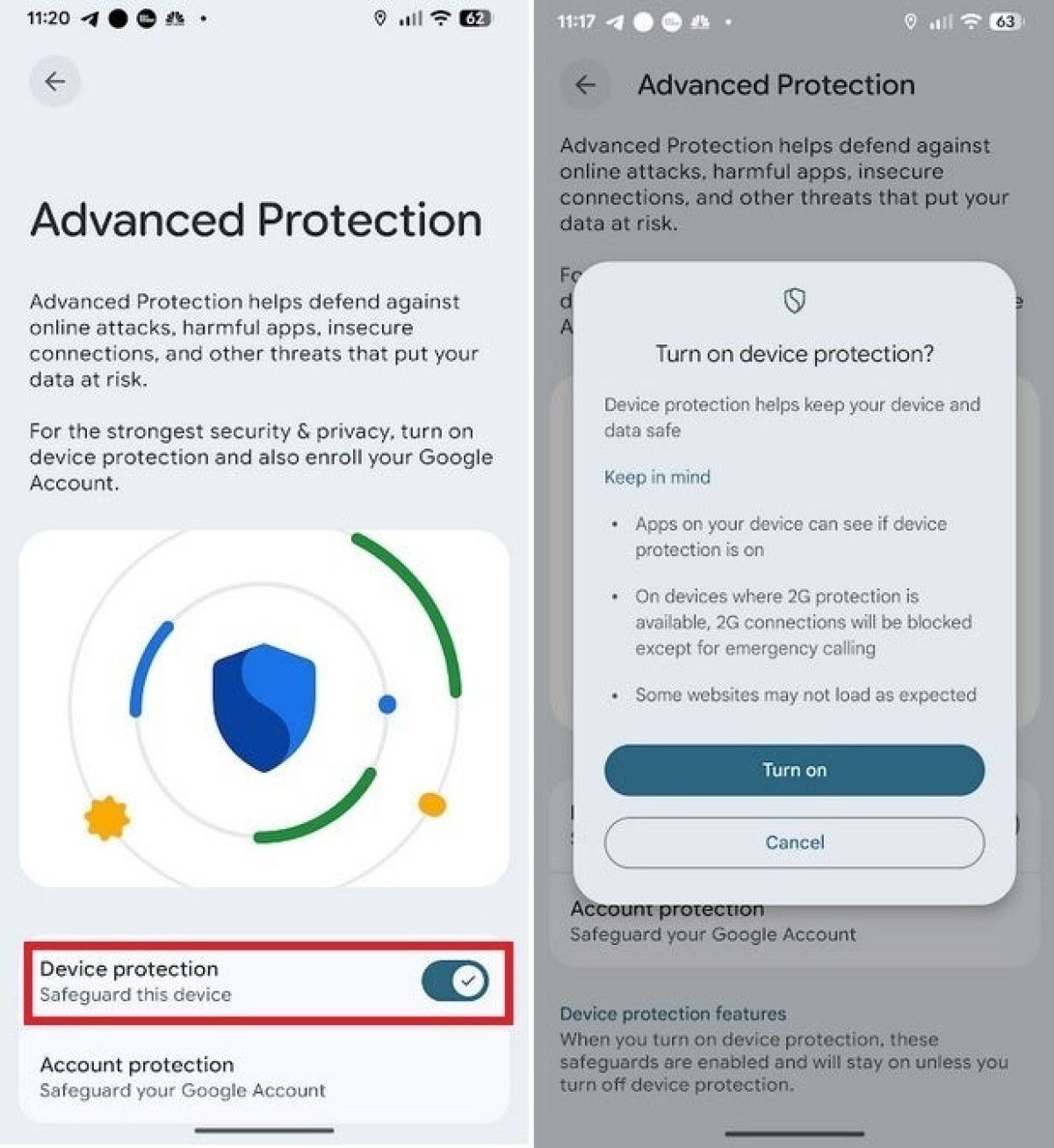 Android 16’da bu işlem, “Güvenlik ve gizlilik > Gelişmiş koruma” menüsü altından kolayca yapılabiliyor.