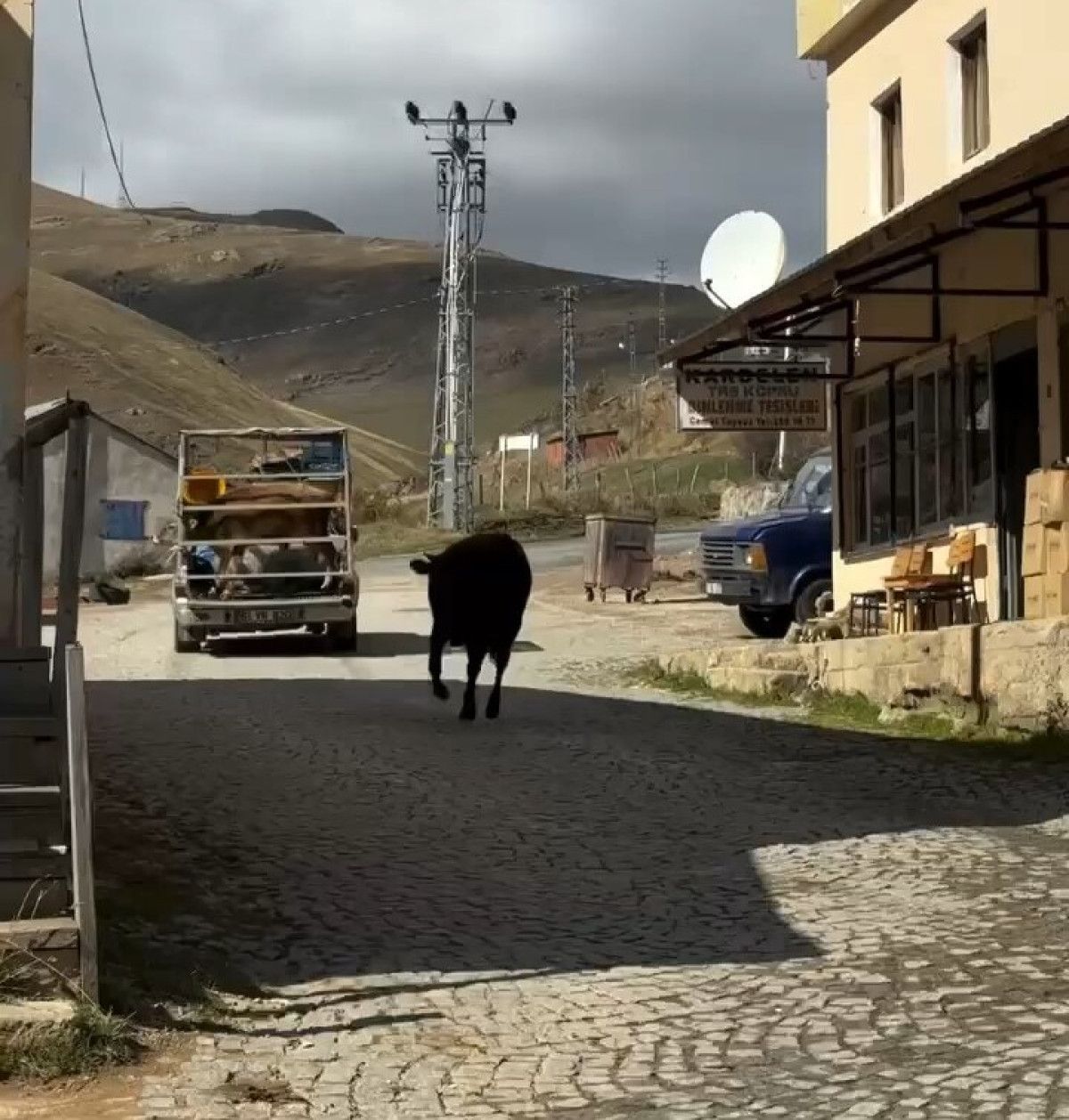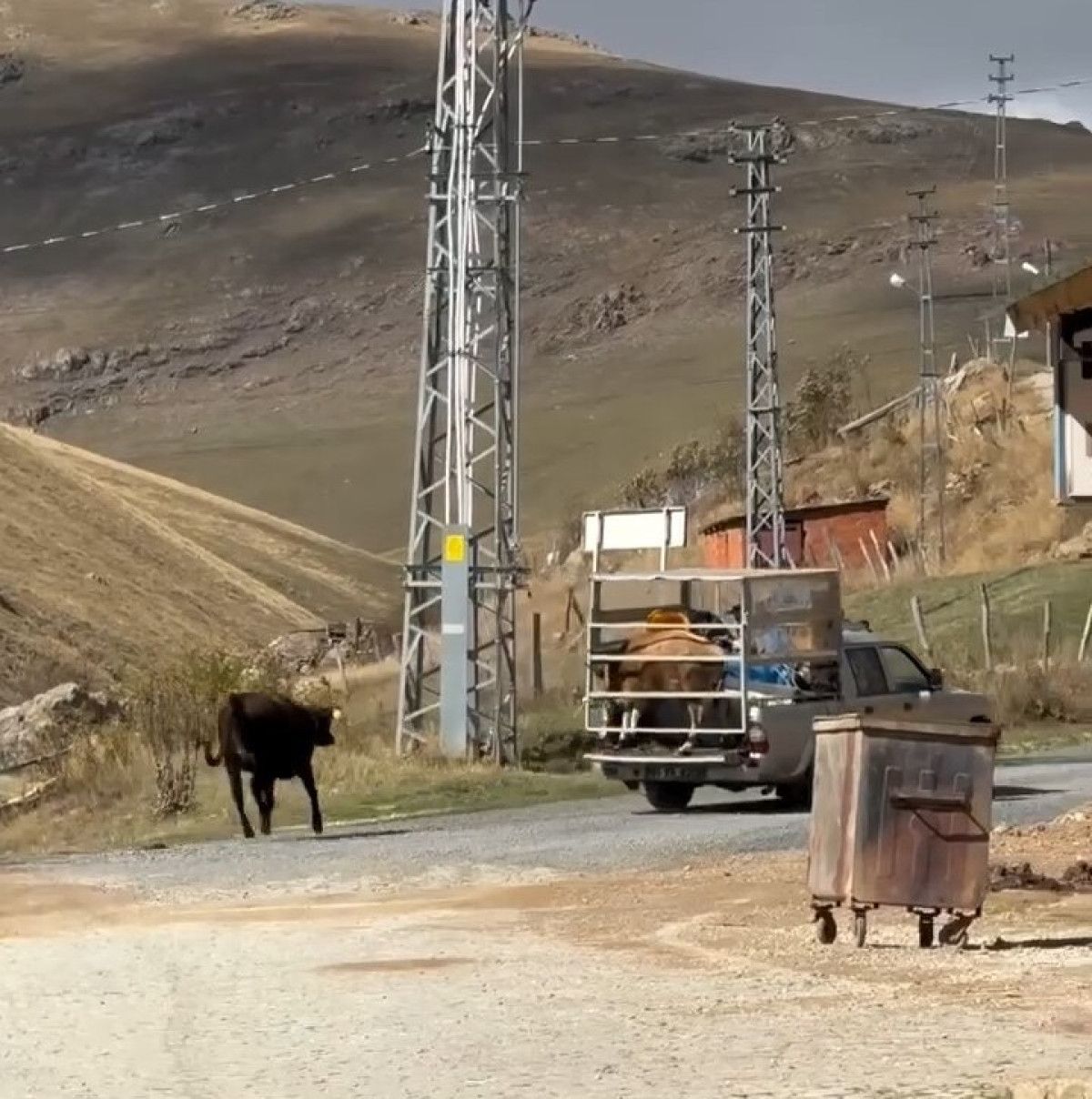 Kamyonet hareket ederken, geride kalan diğer inek aracın ardından koşmaya başladı.
