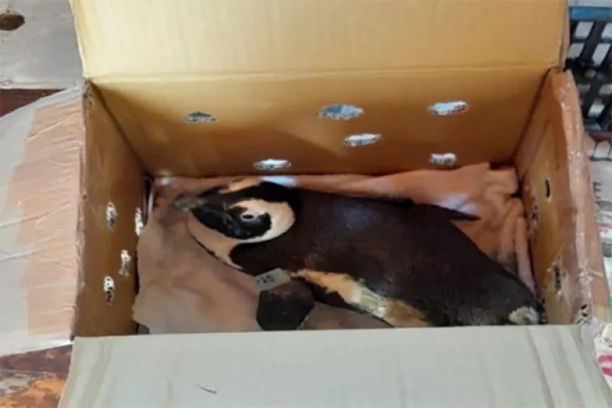 Ön koltukta oturan araştırmacının tuttuğu bir kutuda taşınan penguen, kalkış sırasında kutudan kurtulmaya çalıştı.