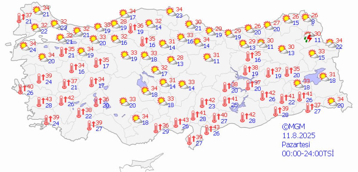 Sıcaklıkların Ankara’da 33 ila 34, İzmir’de 38 ila 40 derece aralığında olması bekleniyor.