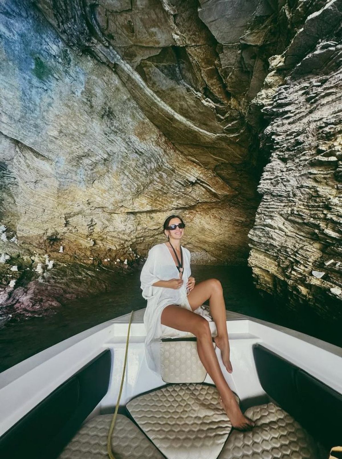 Nişanlısı ile tekne turu yapan Hazal Çağlar, bir mağarada Samet Akaydın’a poz verdi.