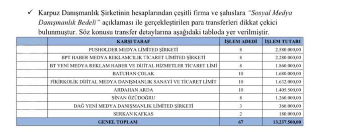 Kabul edilen iddianamede dikkat çeken detaylardan biri, firari durumda olan ve Murat Ongun’un yardımcısı olarak bilinen Emrah Bağdatlı’nın ortağı olduğu Karpuz Danışmanlık Ltd. Şti. aracılığıyla para transfer ettiği sosyal medya ajansları oldu.