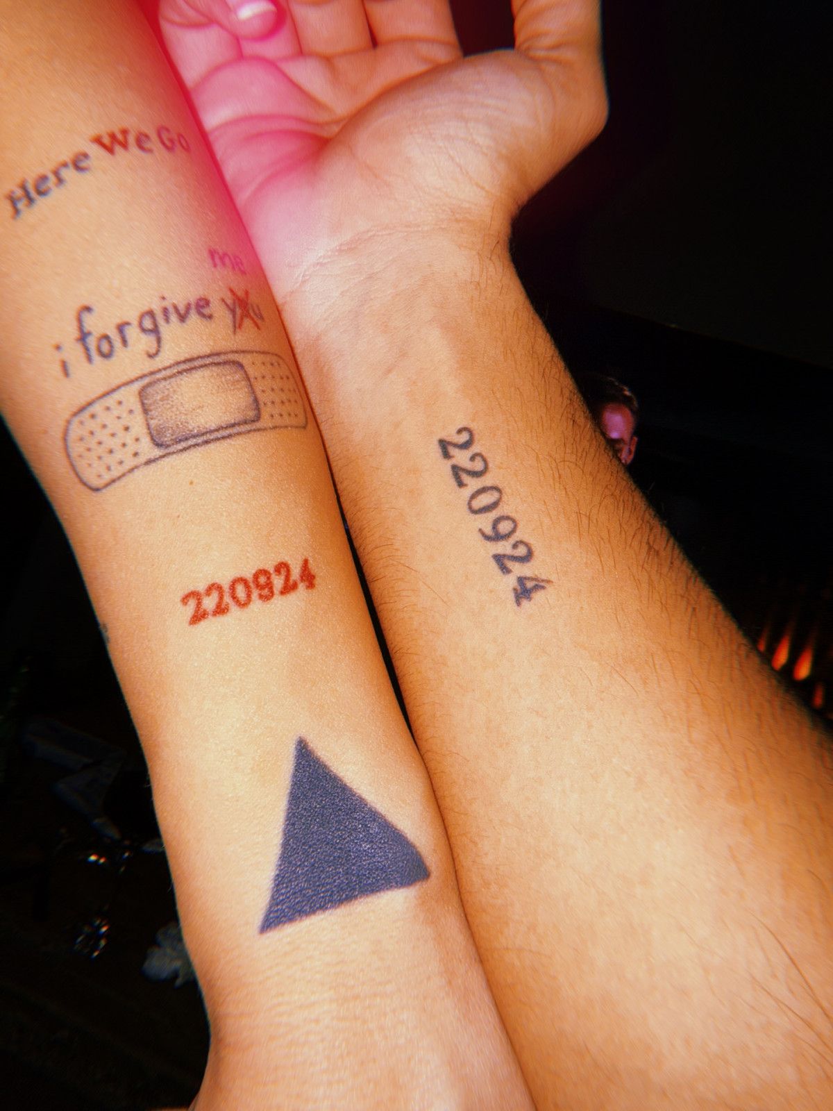 Çift, ilişkiye başladıkları günü kollarına dövme yaptırdı.