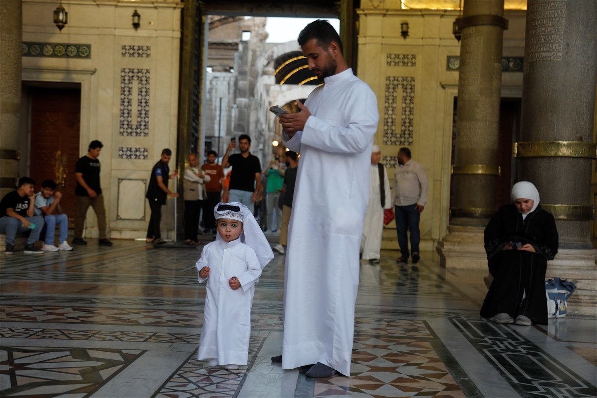 Başkent Şam’daki tarihi öneme sahip Emevi Camisi’ne bayram namazı için binlerce kişi akın etti.