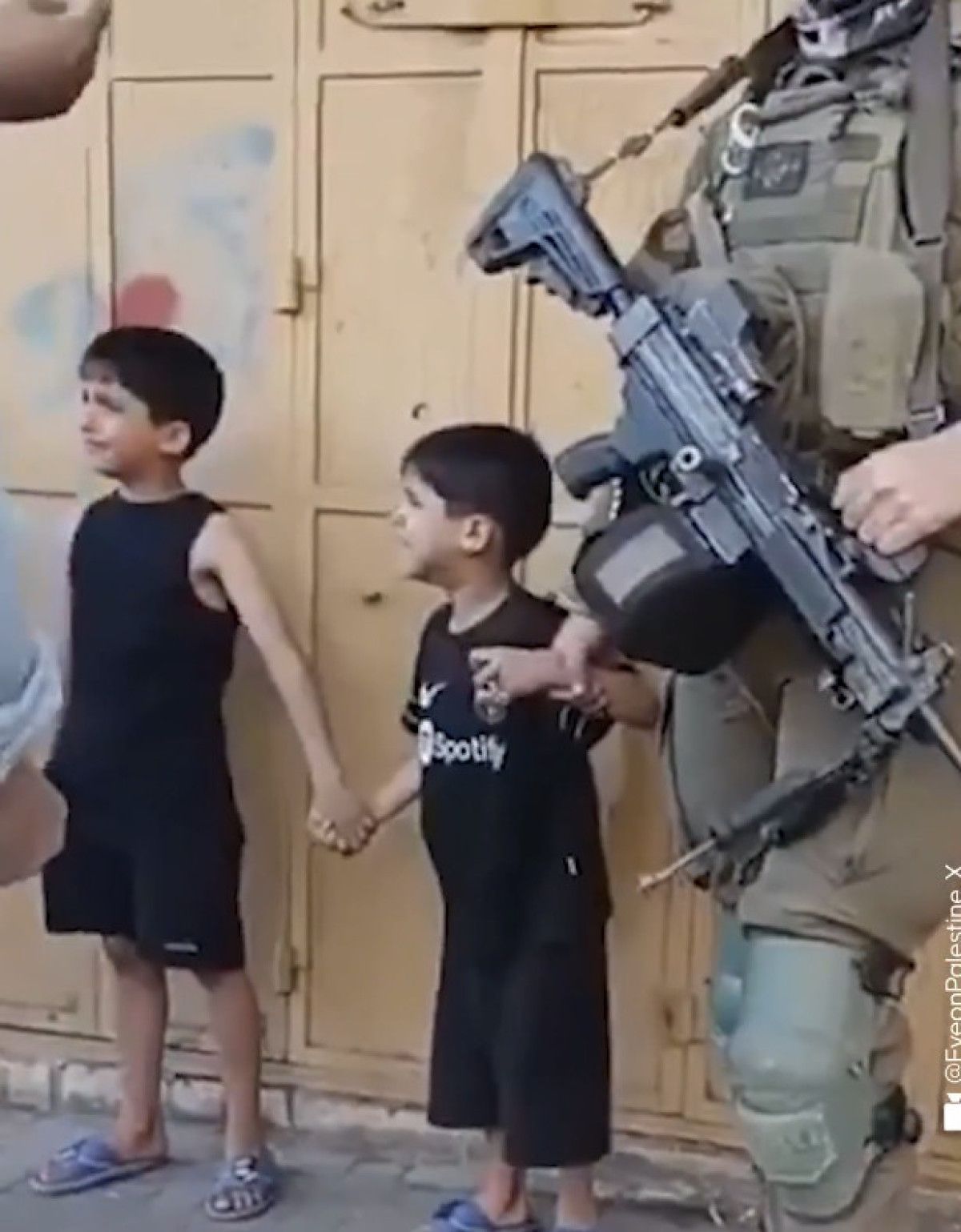 Öte yandan sosyal medyada, 2 küçük çocuğun gözaltına alındığı anları gösteren görüntü, Filistinlilerin Batı Şeria’da yaşadığı zulmü ve İsrail işgalinin geldiği noktaya adeta gözler önüne seriyor.
