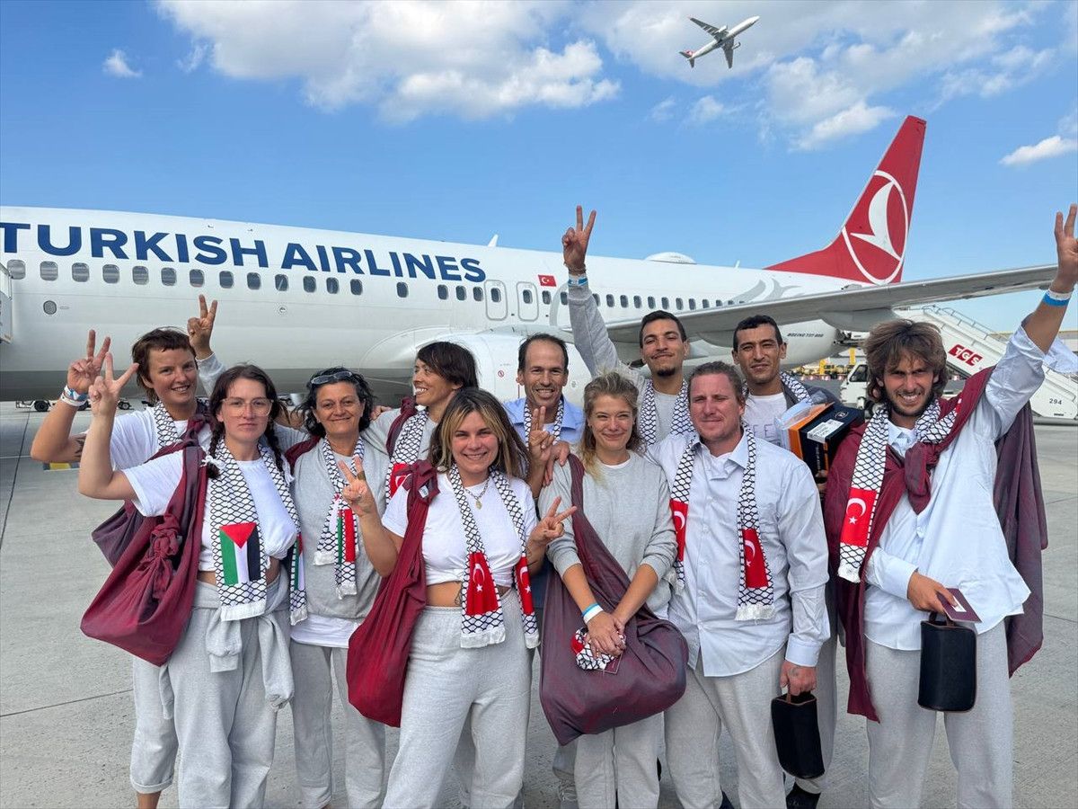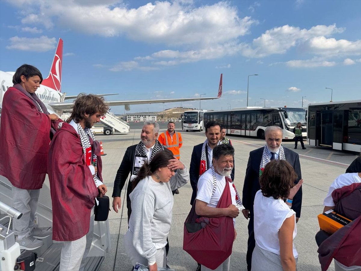 Apronda; TBMM Türkiye-Filistin Parlamentolar Arası Dostluk Grubu Başkanı ve AK Parti İstanbul Milletvekili Hasan Turan, AK Parti İstanbul İl Başkanı Abdullah Özdemir ve THY yetkilileri tarafından çiçeklerle karşılanan aktivistler, otobüsle havalimanı önüne götürüldü.