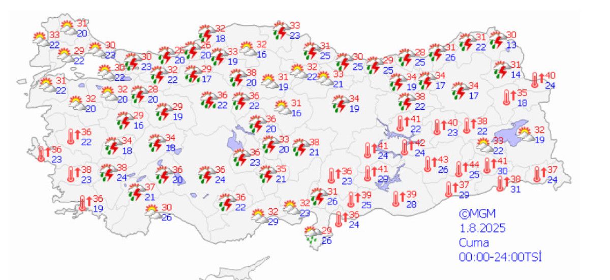 1 Ağustos(yarın) itibariyle önümüzdeki dört gün boyunca Türkiye’nin kuzey, iç ve doğu kesimlerinde yer yer sağanak ve gök gürültülü sağanak yağışlar etkili olacak.