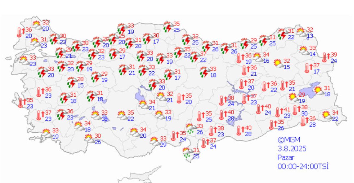 Trakya, Batı Karadeniz, Orta ve Doğu Karadeniz kıyıları ile Kocaeli, İstanbul, Sakarya, Yalova, Bursa, Balıkesir’in kuzeyi, Çanakkale’nin doğusu, Kütahya, Adana’nın kuzey ve doğusu, Kahramanmaraş’ın batısı, Hatay kıyıları, Artvin, Kars ve Ardahan çevrelerinde yerel olmak üzere sağanak ve gök gürültülü sağanak yağışlar görülecek.