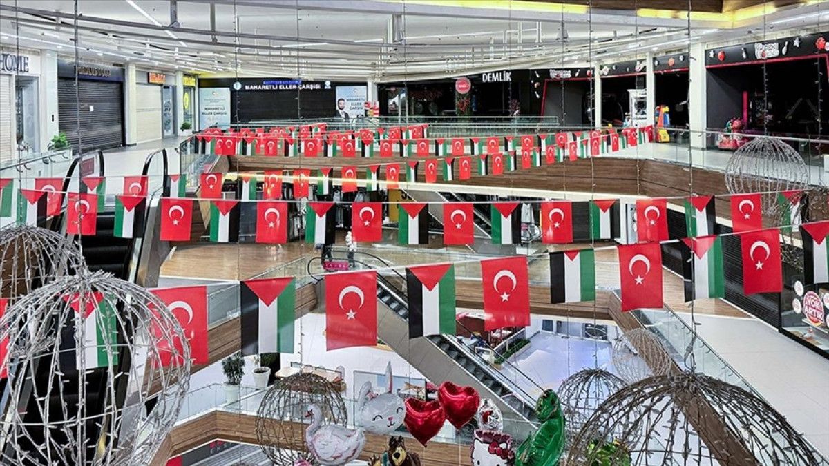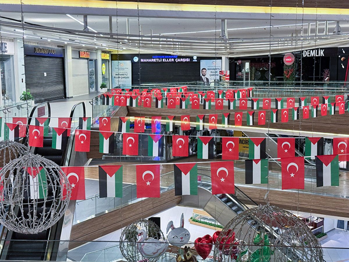 Filistin bayraklarıyla süslenecek AVM’lerde, “Gazze” temalı sergi de açılacak.