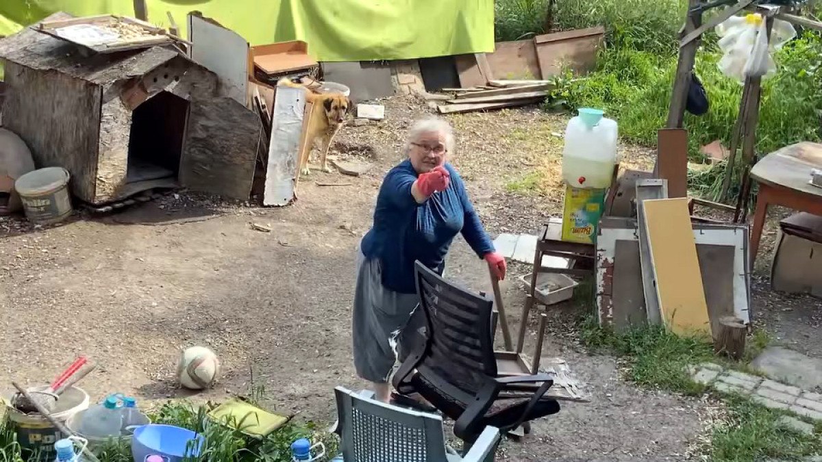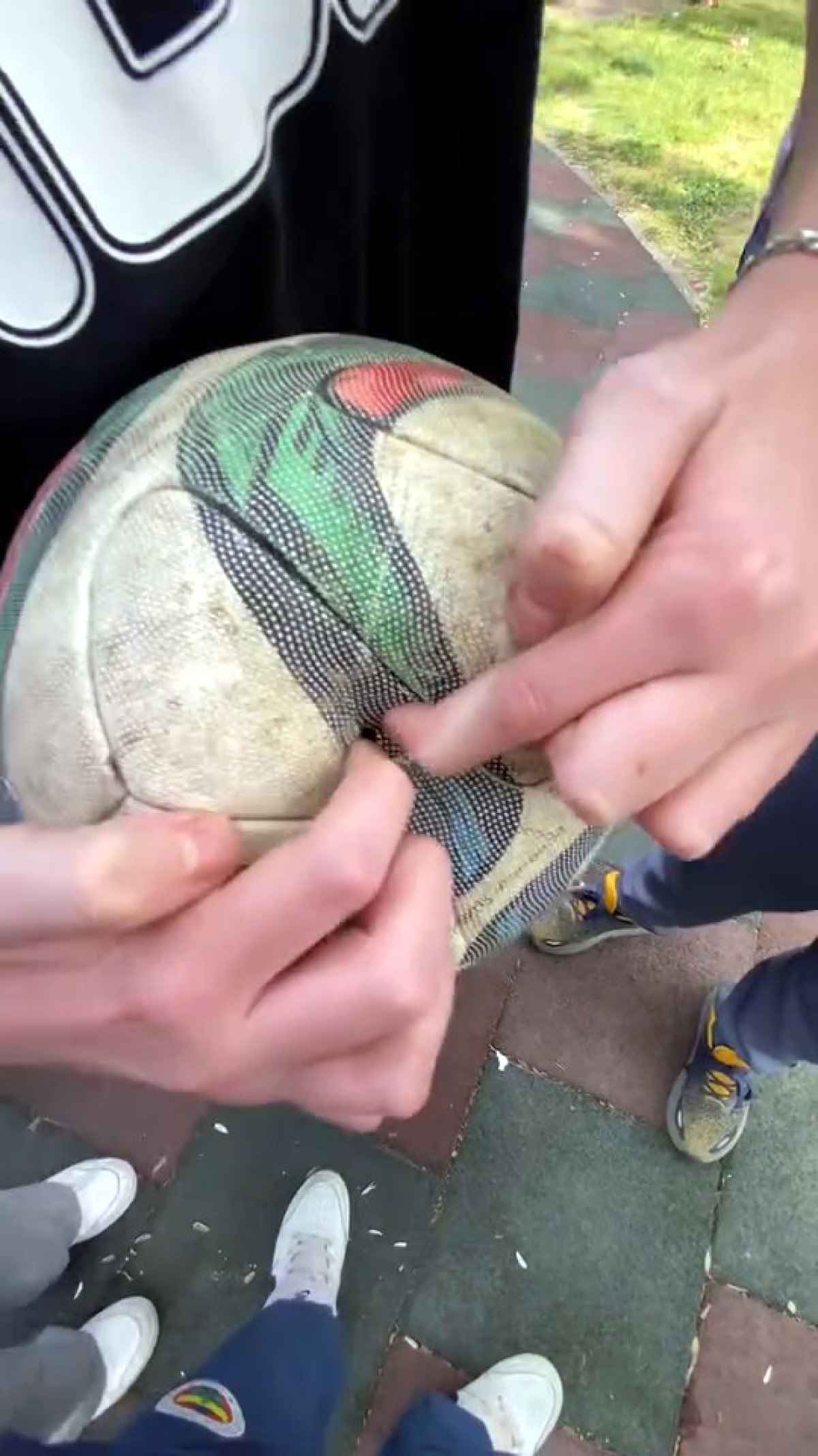 Kadın bahçeye kaçan topu patlatırken, kadının eşi ise çocuklara toplarını geri verdi.