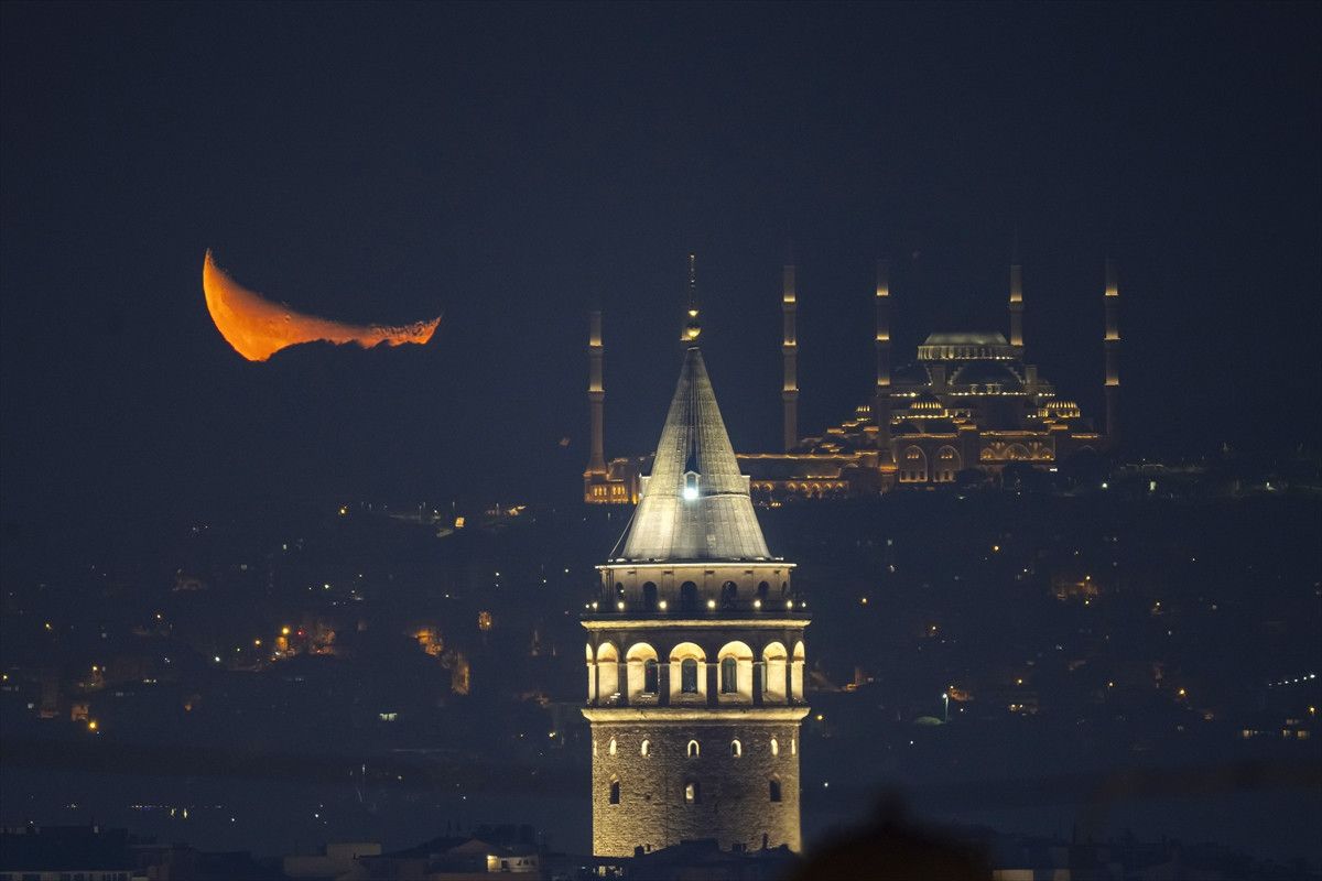 Galata Kulesi’nin silüetine eşlik eden hilal, kullanıcılar tarafından “büyüleyici”, “İstanbul’un güzelliği bir başka” yorumlarıyla paylaşıldı.