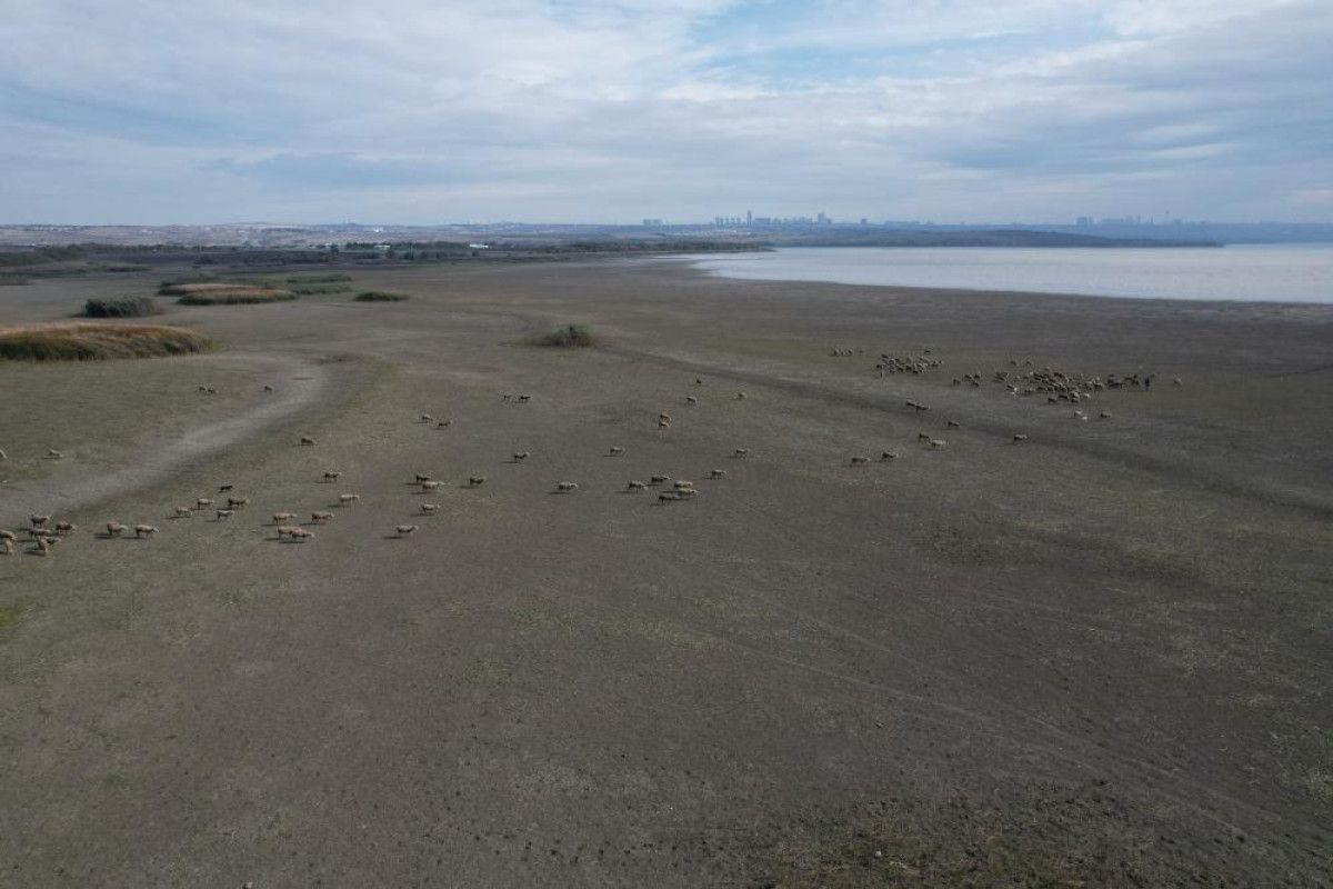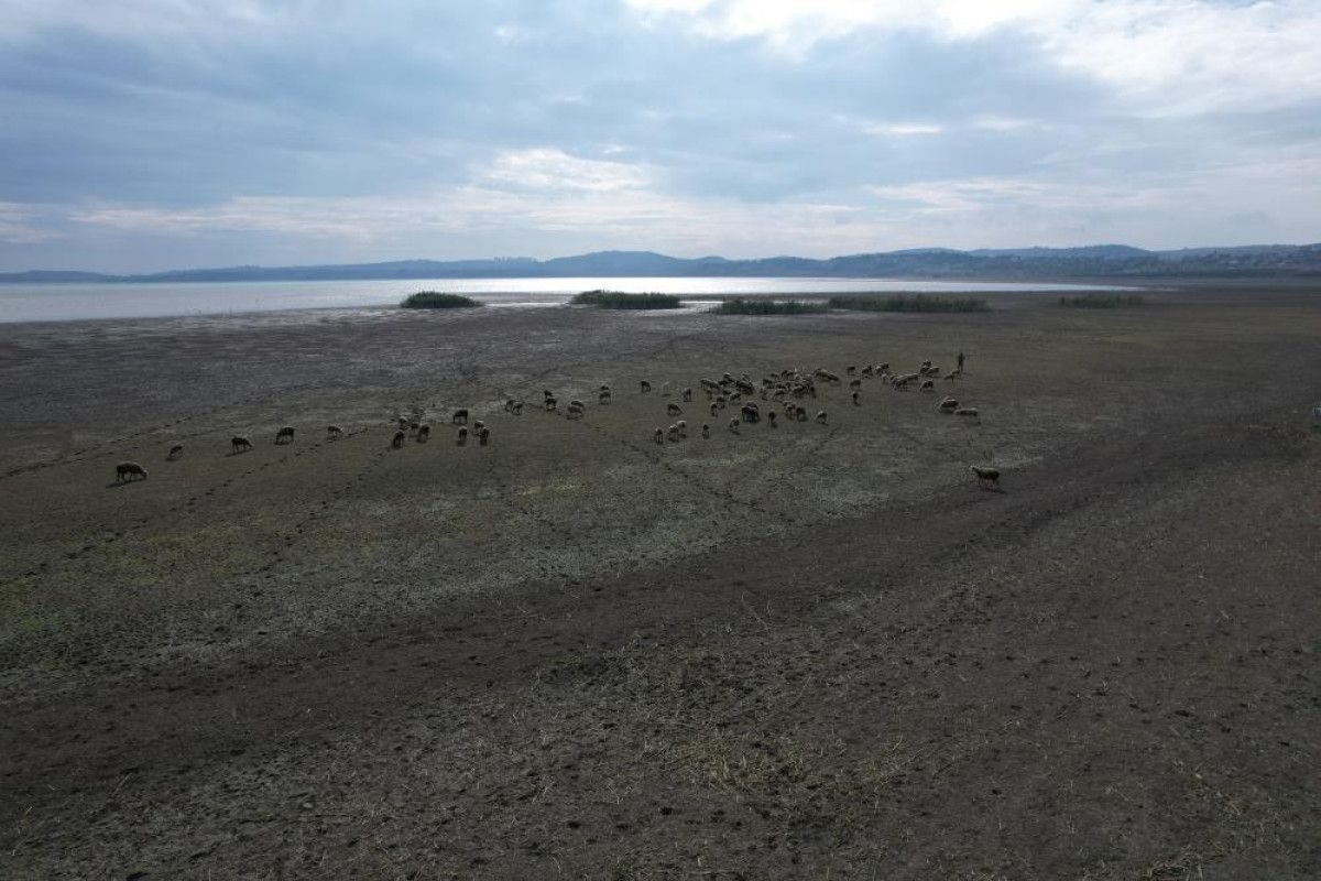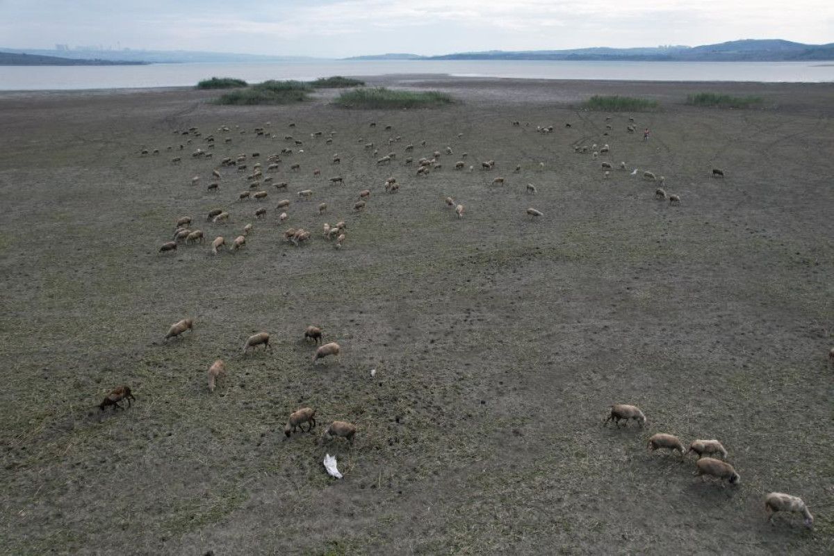 Dron ile havadan yapılan çekimlerde, kuraklık gözler önüne serildi. Kuruyan alanlarda çobanlar tarafından koyunların otlatıldığı görüldü.