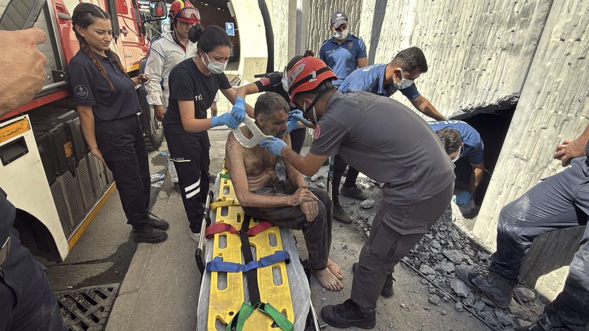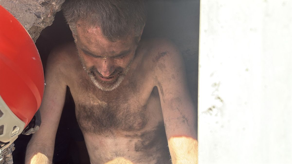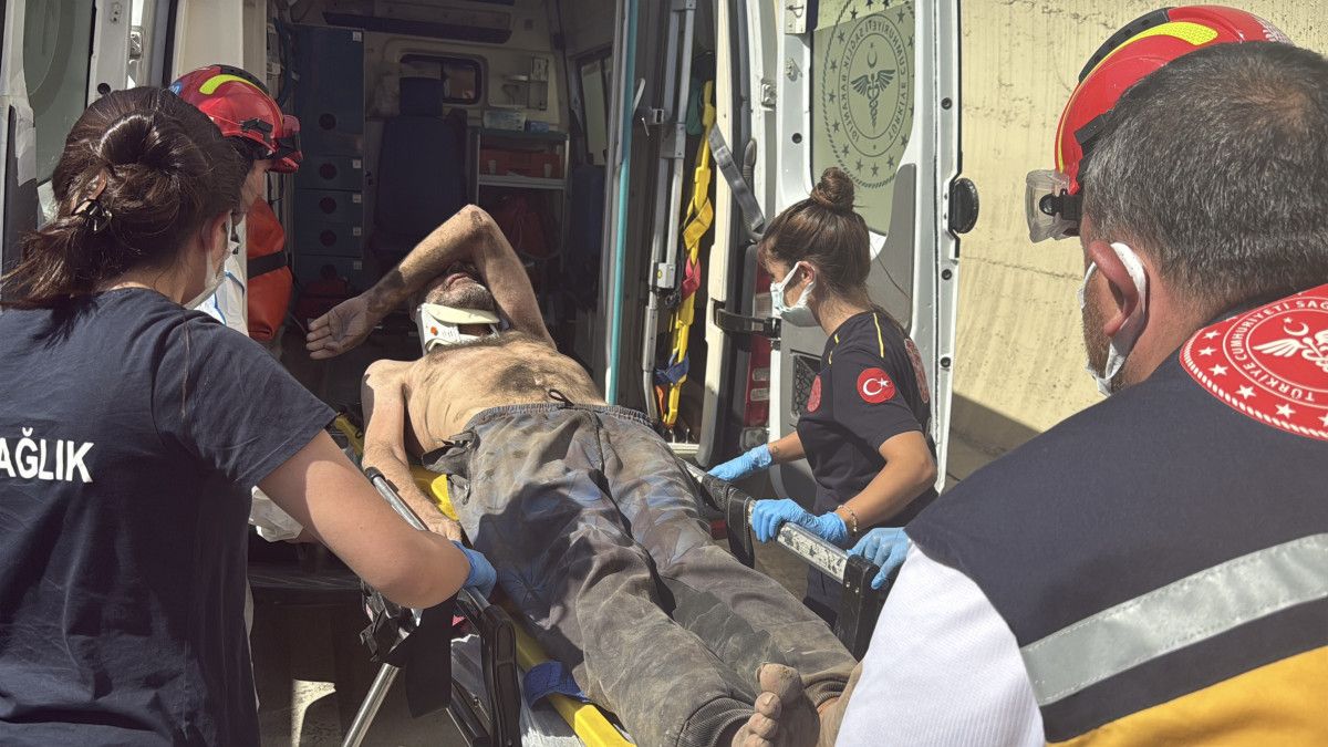 Ancak içerideki adam bitkin olması ve alanın dar olması nedeniyle dışarı çıkarılamadı.