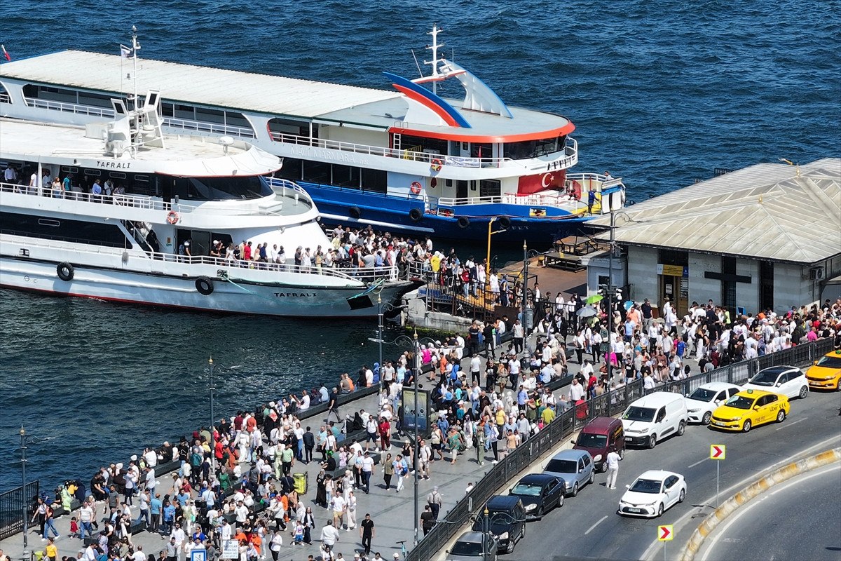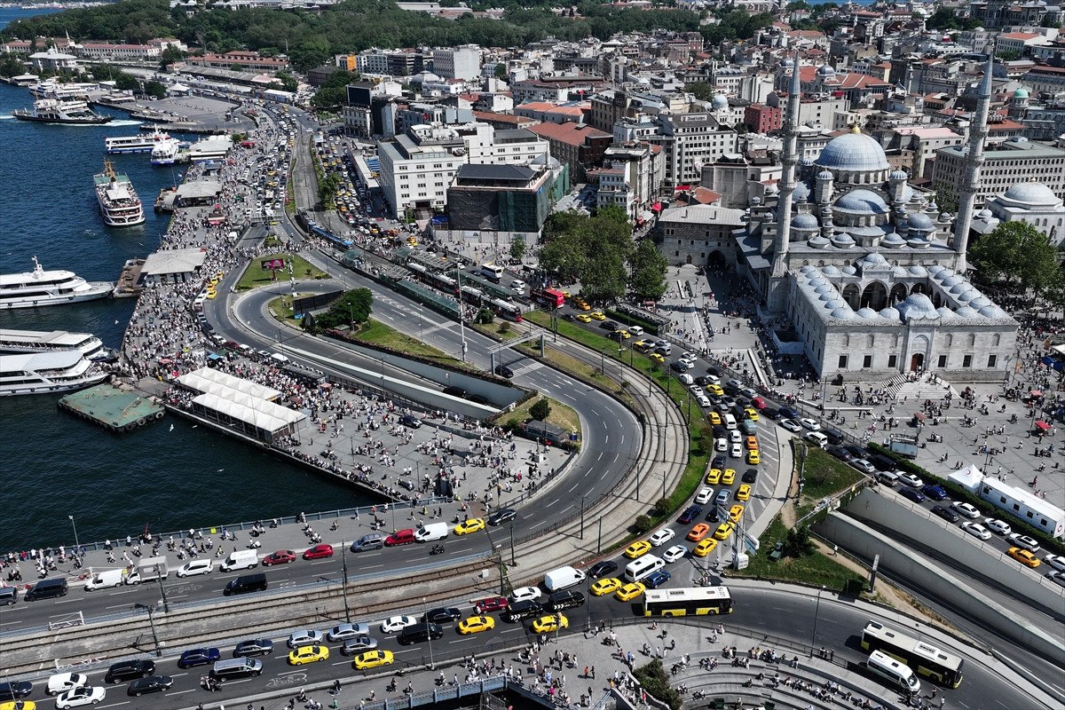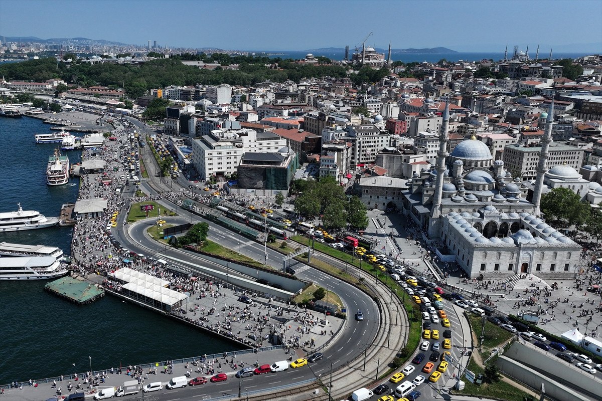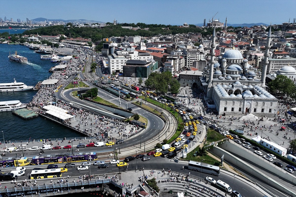 İstanbullular, sıcak havaya rağmen Eminönü Meydanı’nı doldurdu.