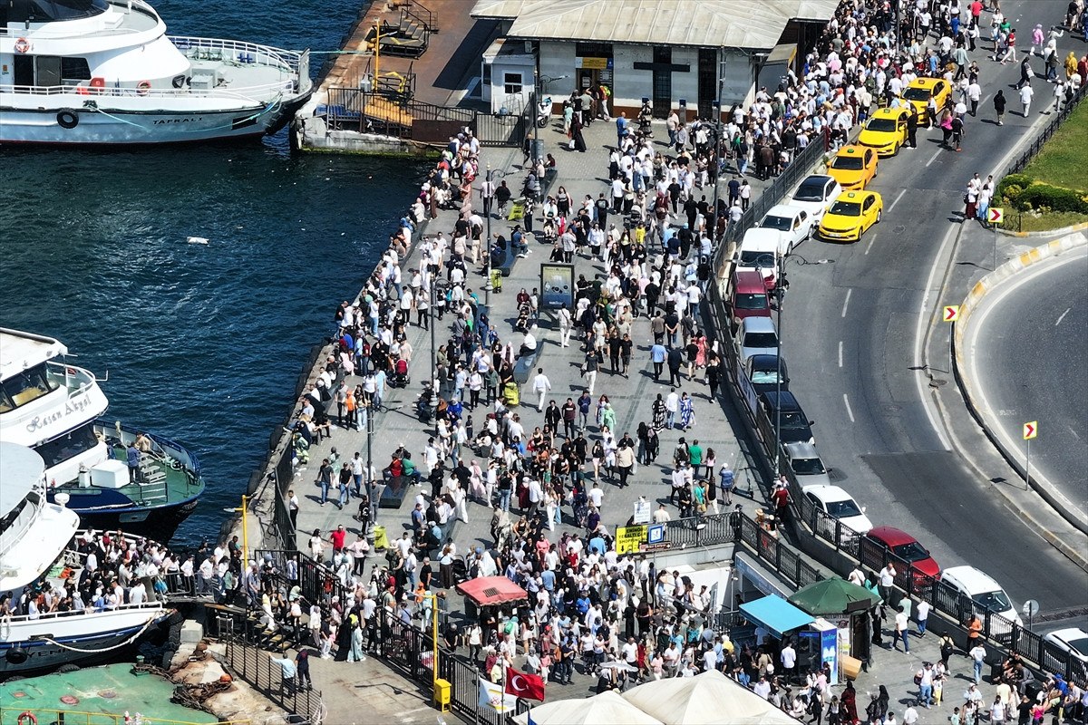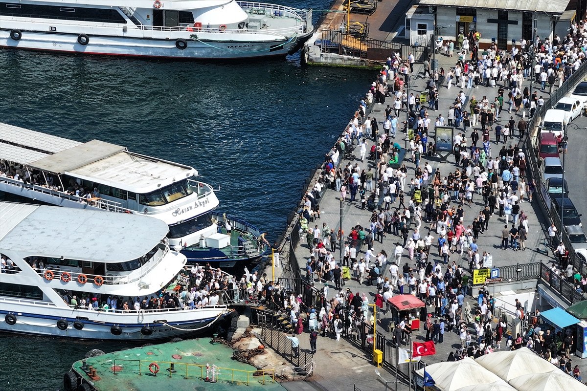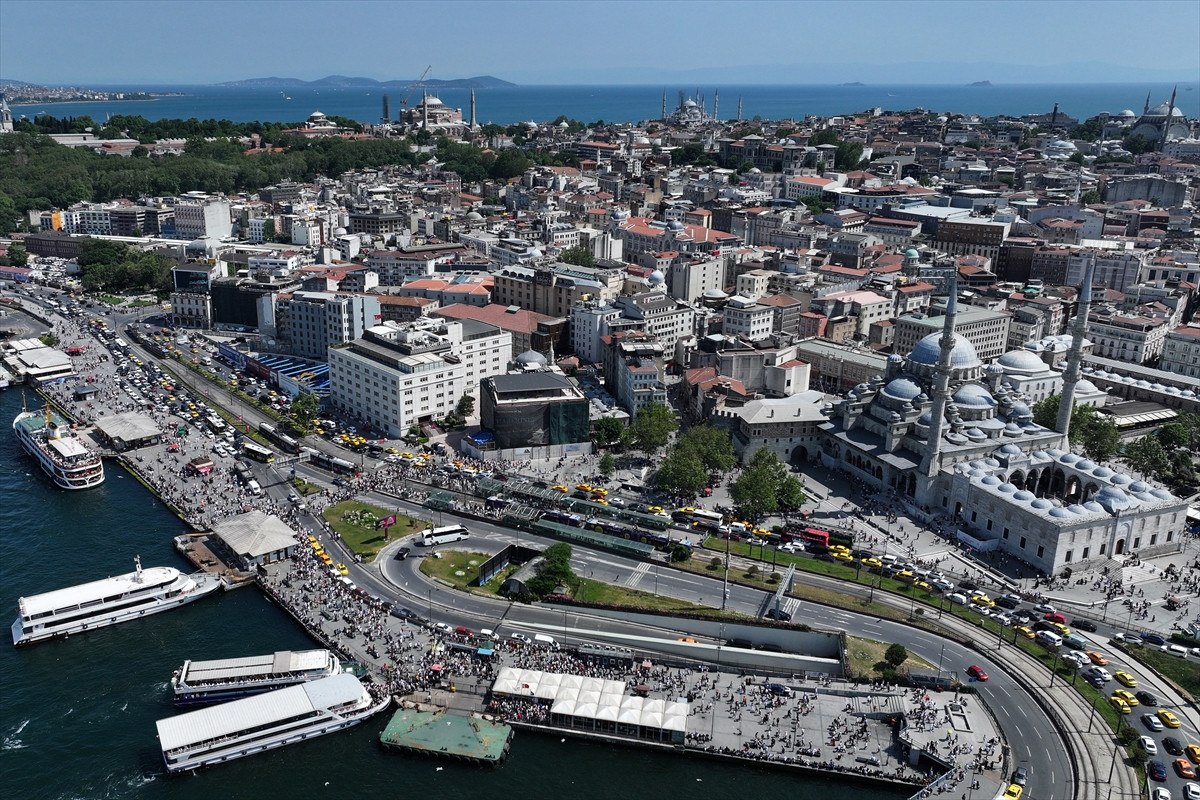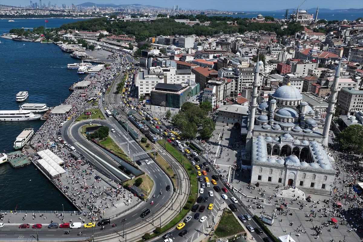 İstanbullular, sıcak havaya rağmen Eminönü Meydanı’nı doldurdu.