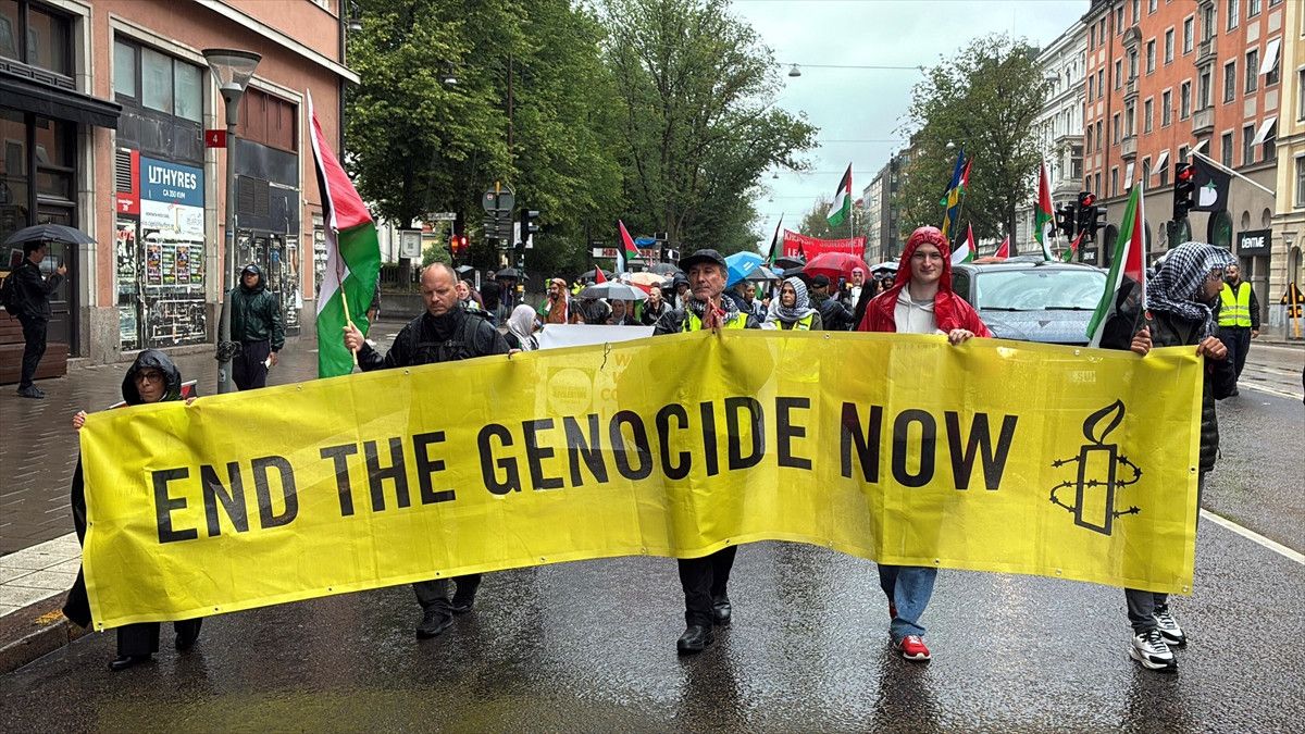 Bu kapsamda, İsveç’in başkenti Stockholm’de yüzlerce kişi, İsrail’in Filistinlilere yönelik gerçekleştirdiği soykırımın durdurulması için protesto yürüyüşü gerçekleştirdi.