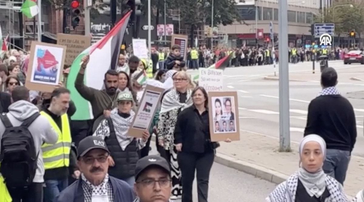 Bu kapsamda son olarak İsveç’in başkenti Stockholm’de protestocular bir araya gelerek, İsrail’in Gazze Şeridi’nde yürüttüğü “soykırım savaşının” sona ermesini talep etti.