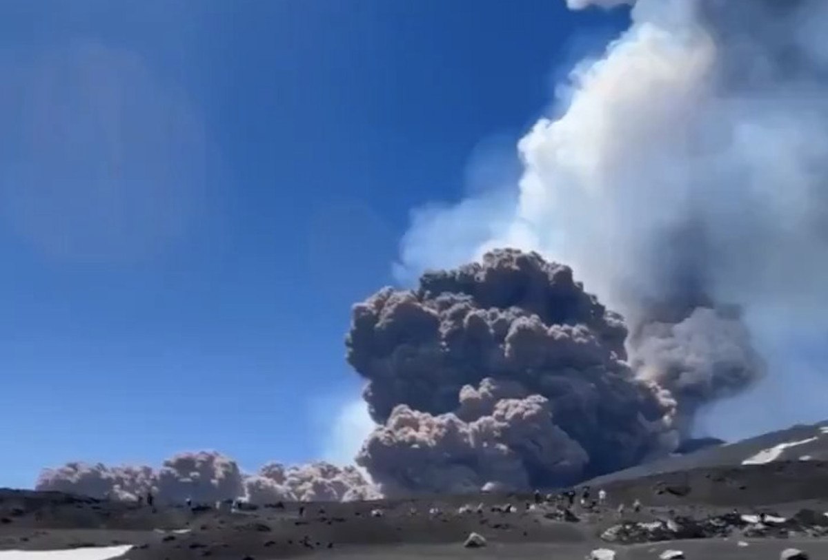 Etna Yanardağı’ndaki bu sabahki volkanik patlama, Katanya gibi çevredeki yerleşim yerlerinden de gözlenebilirken, patlama sırasında yanardağda olan kişilerin kaçmaya çalıştığı görüntülere yansıdı.